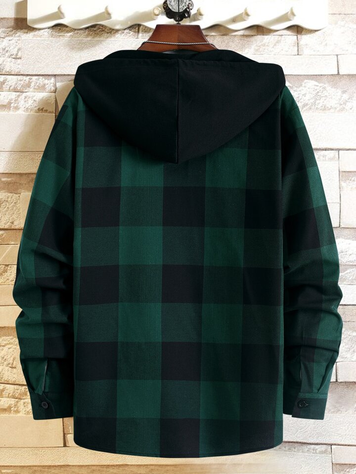 Camicia con cappuccio e coulisse a quadretti con tasca applicata per uomo senza camicia a maniche corte, camicia vintage invernale a maniche lunghe, regalo per il fidanzato