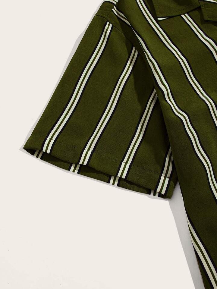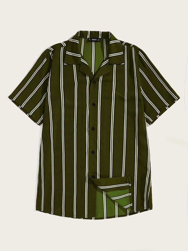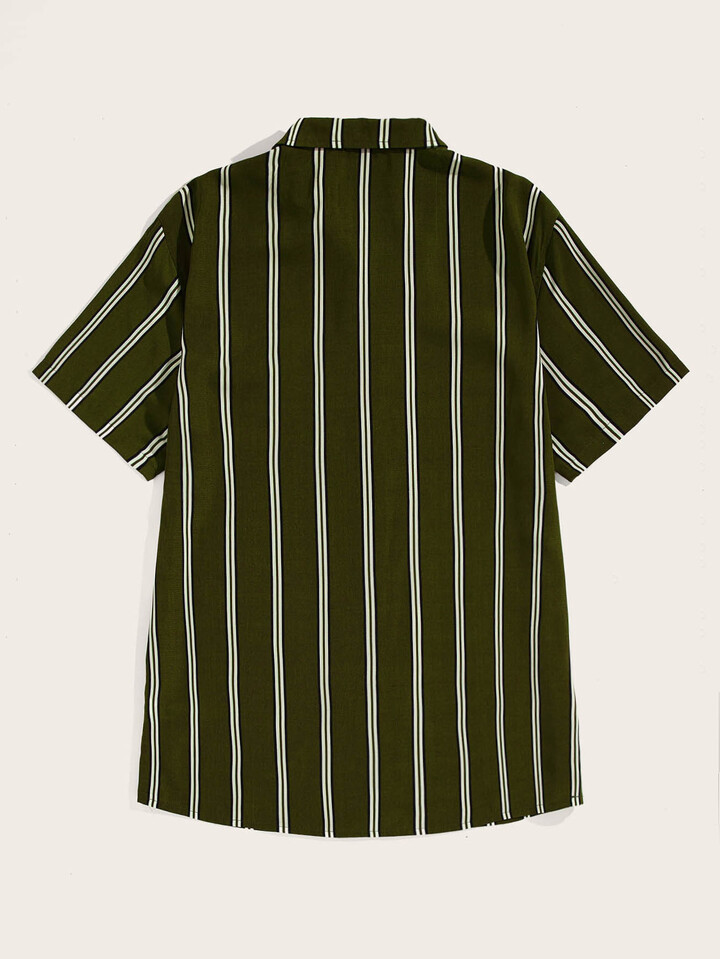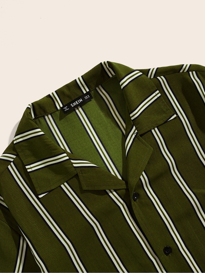 Camicia a righe con collo risvolto e bottone da uomo