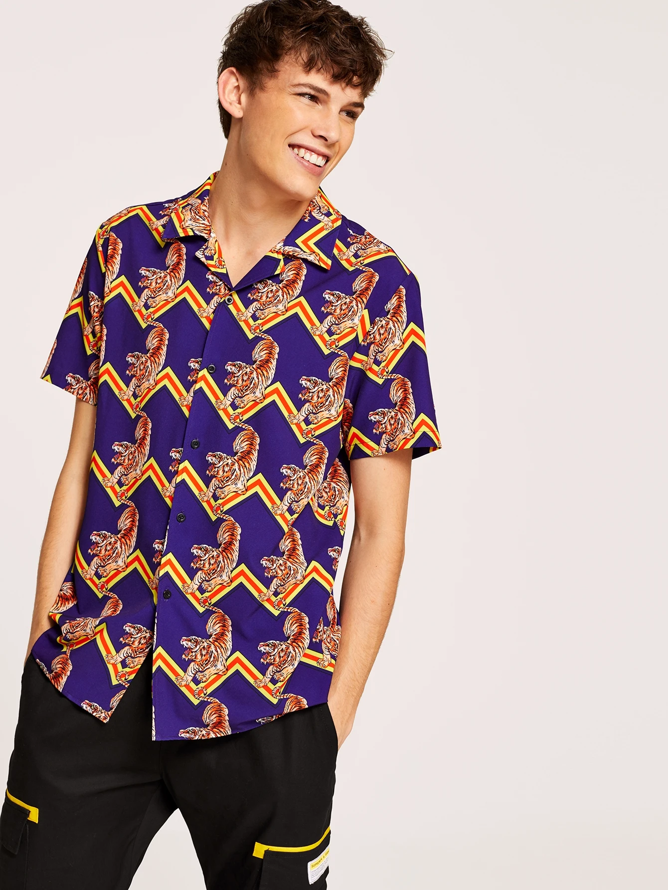 Camicia con stampa tiger e collo risvolto e bottone up da uomo