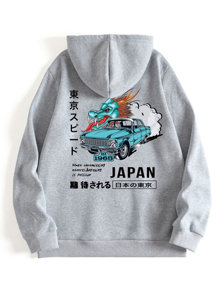 Ragazzi Felpa con cappuccio auto e grafica giapponese con coulisse foderato termico