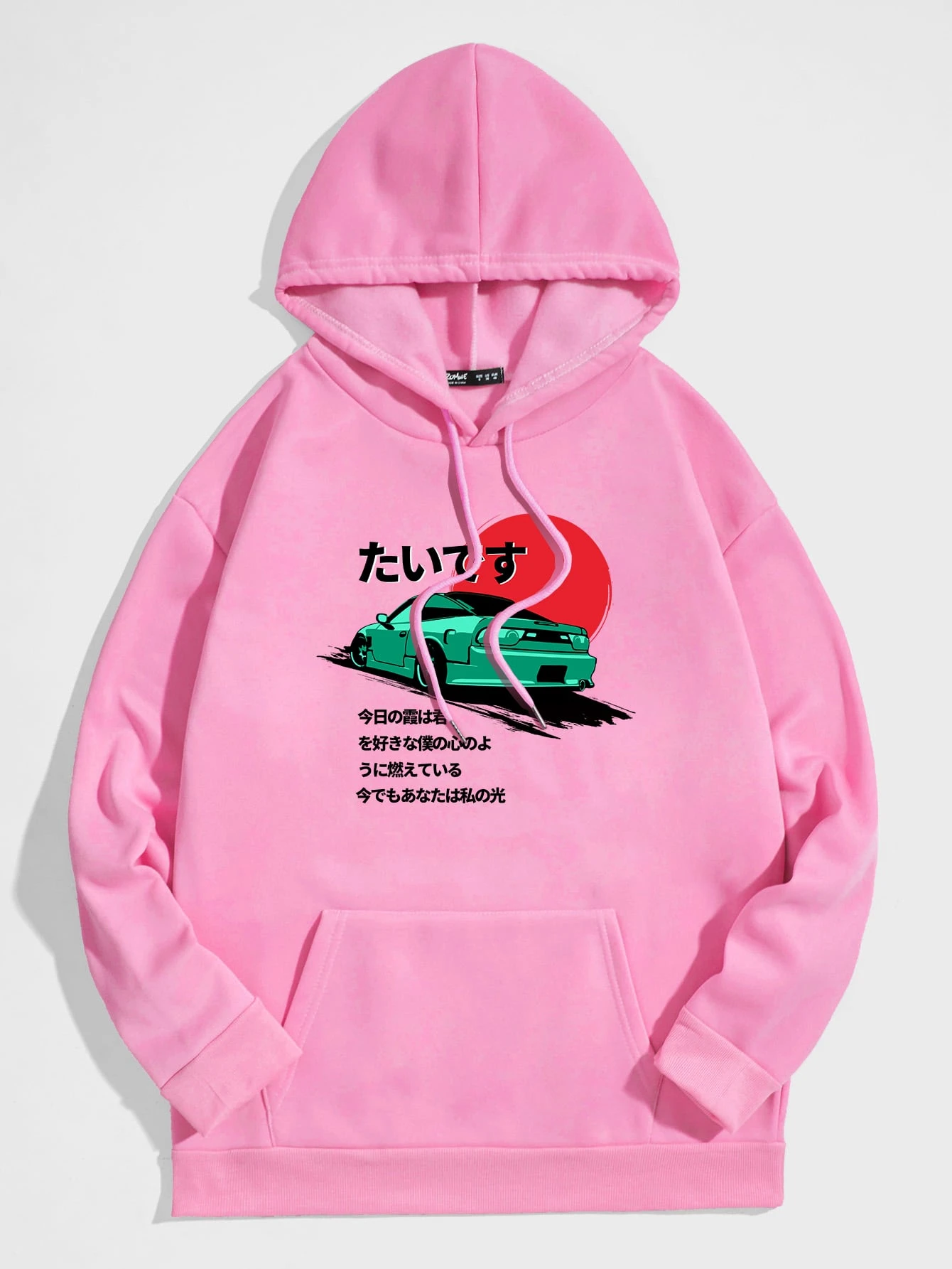 ragazzi Felpa con cappuccio con grafica auto con tasca a marsupio con coulisse