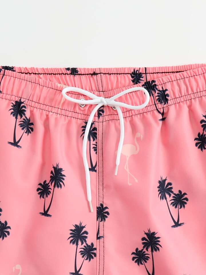 Uomo Trunks da nuoto albero di cocco & con stampa fenicottero