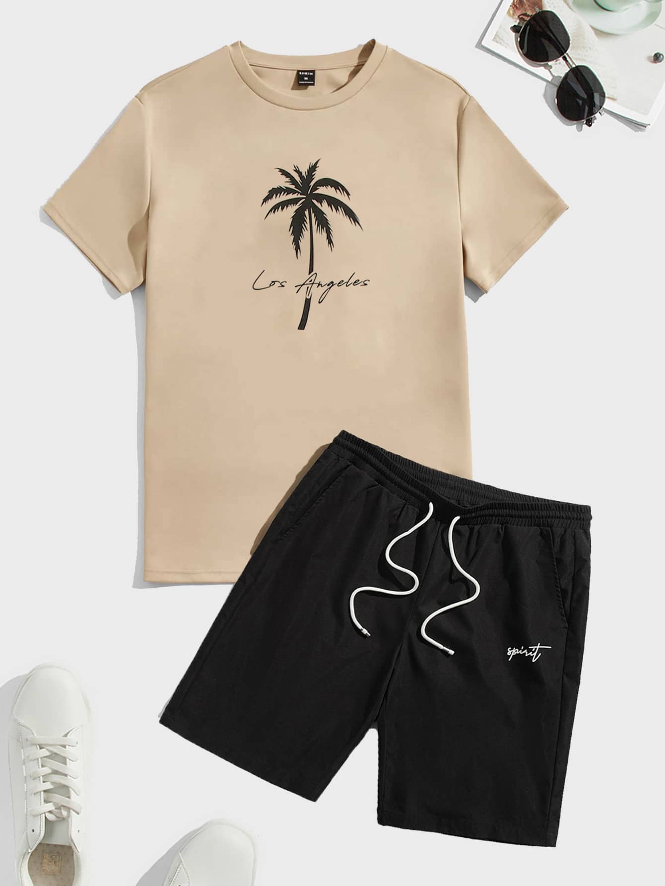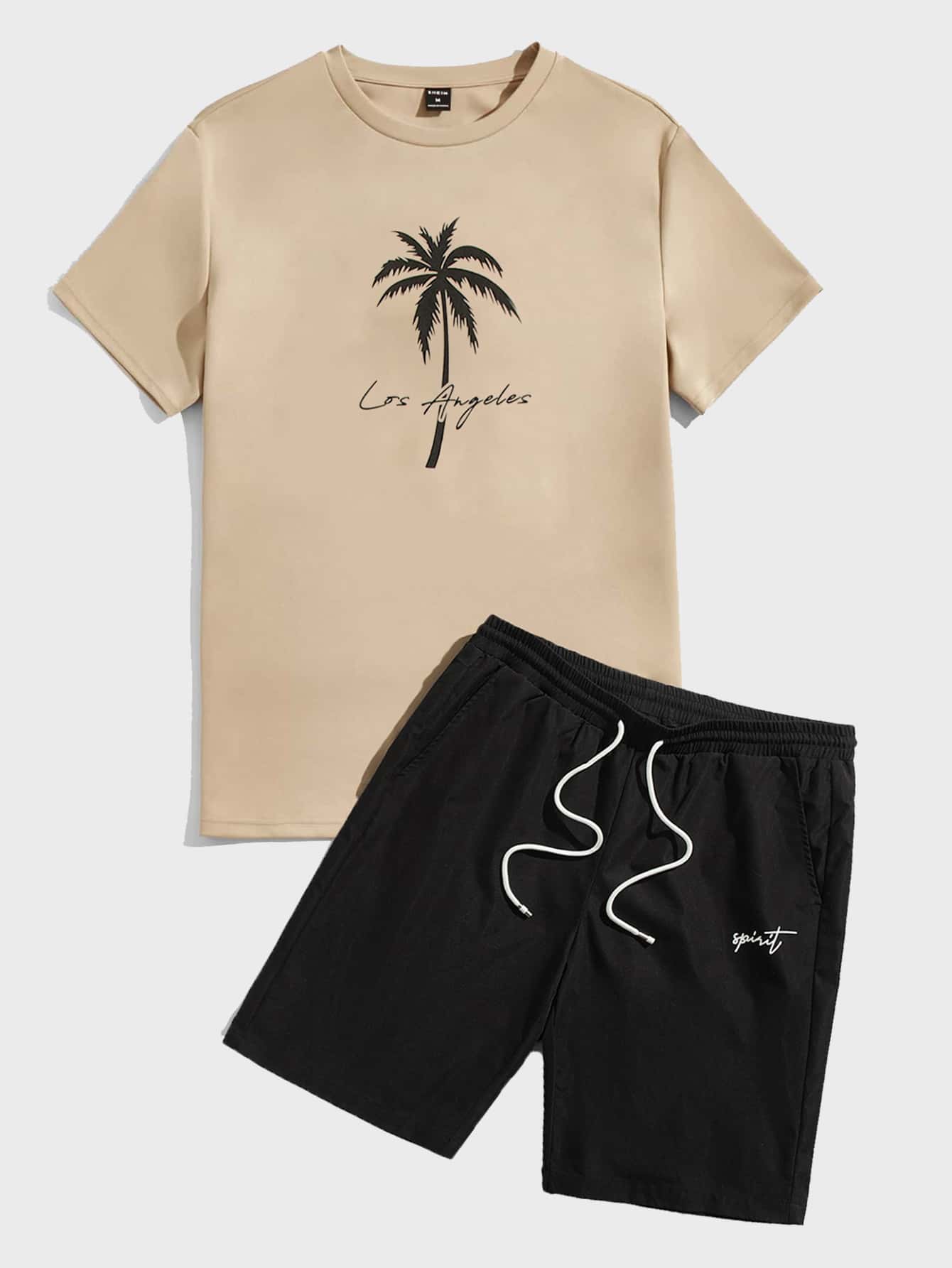 Uomo con grafica lettera e albero di cocco Maglietta & con coulisse a vita Shorts