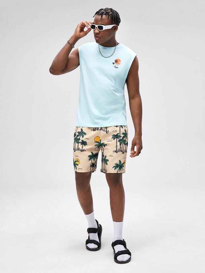 Ragazzi Shorts stampa albero di cocco con coulisse a vita