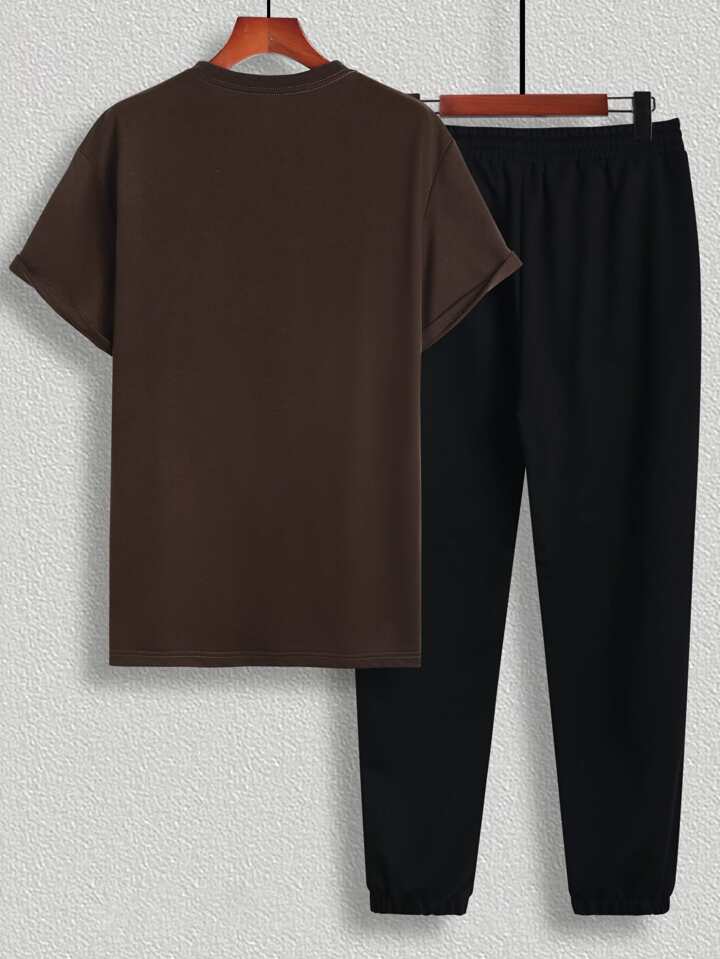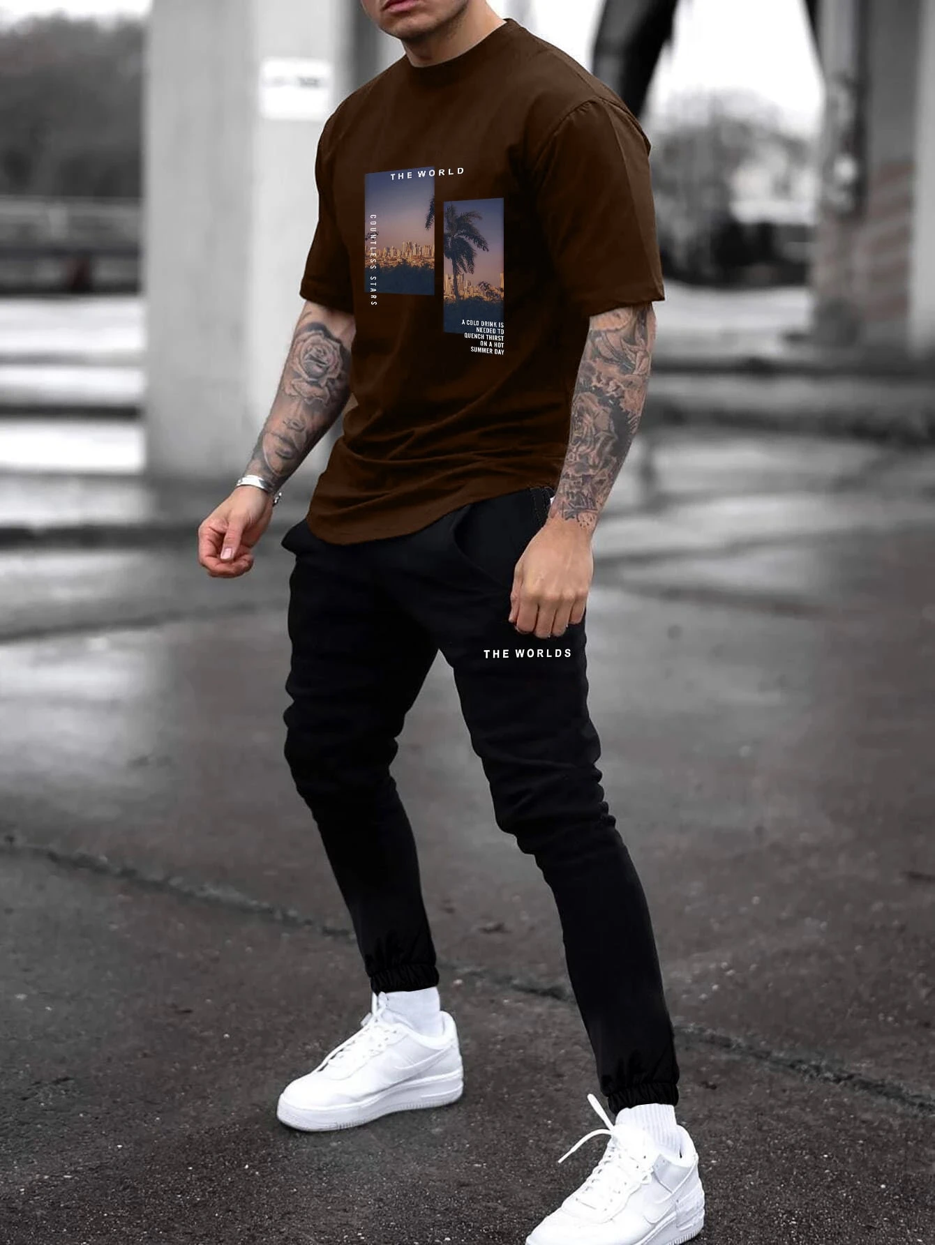 Uomo Maglietta con grafica albero di cocco e slogan & Pantaloni sportivi con coulisse a vita