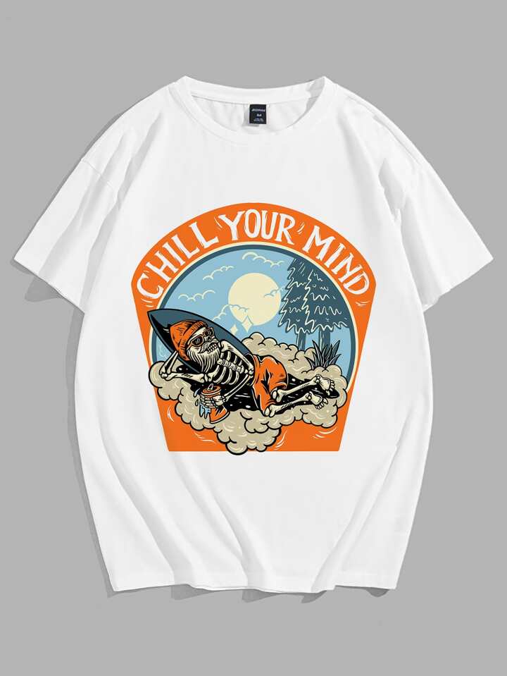 Ragazzi Maglietta cotone slogan scheletro & con grafica sole