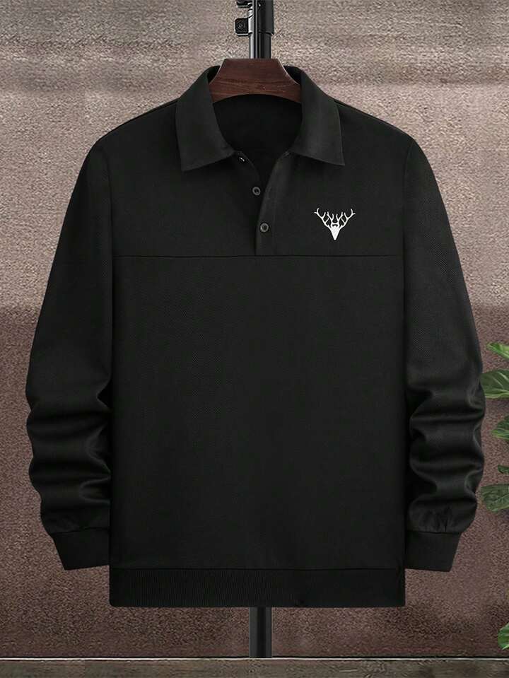 Uomo Felpe cervo con ricamo polo spalle cadenti