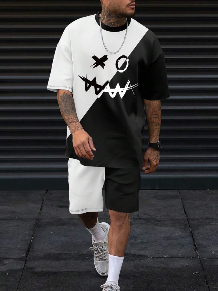 Uomo Dal Taglio Morbido, T-shirt & Short A Due Toni Con Stampa Espressionistica