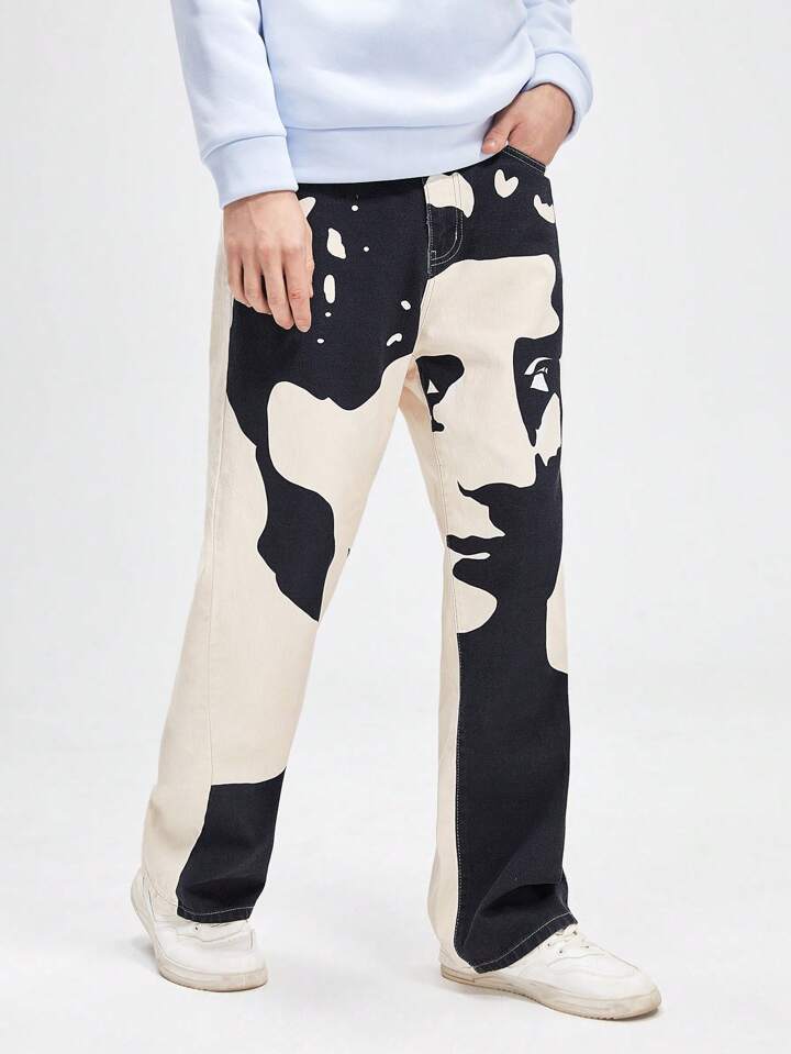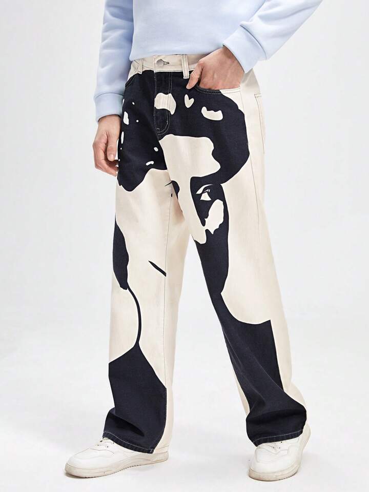 Uomo Jeans a gamba dritta cotone con stampa figura