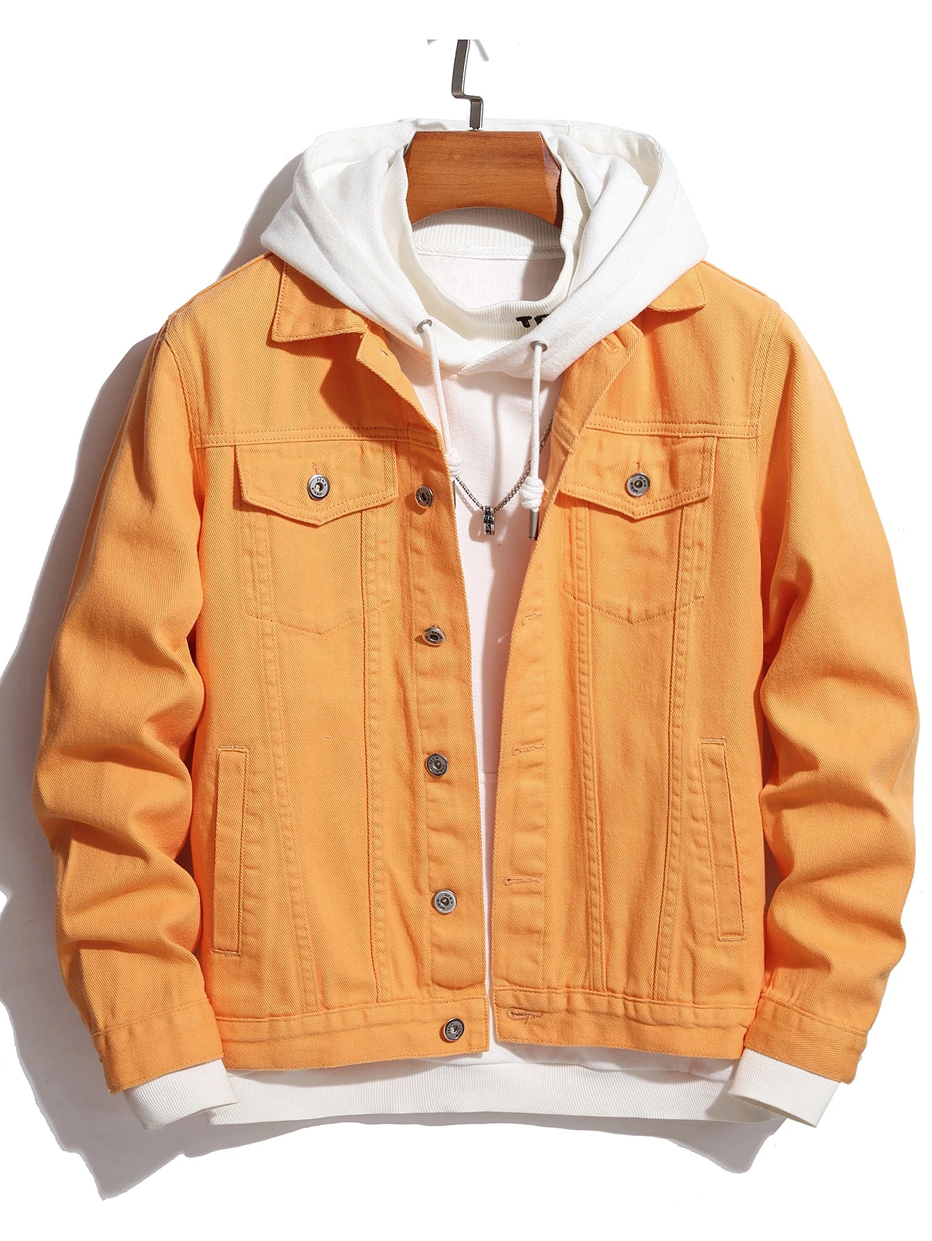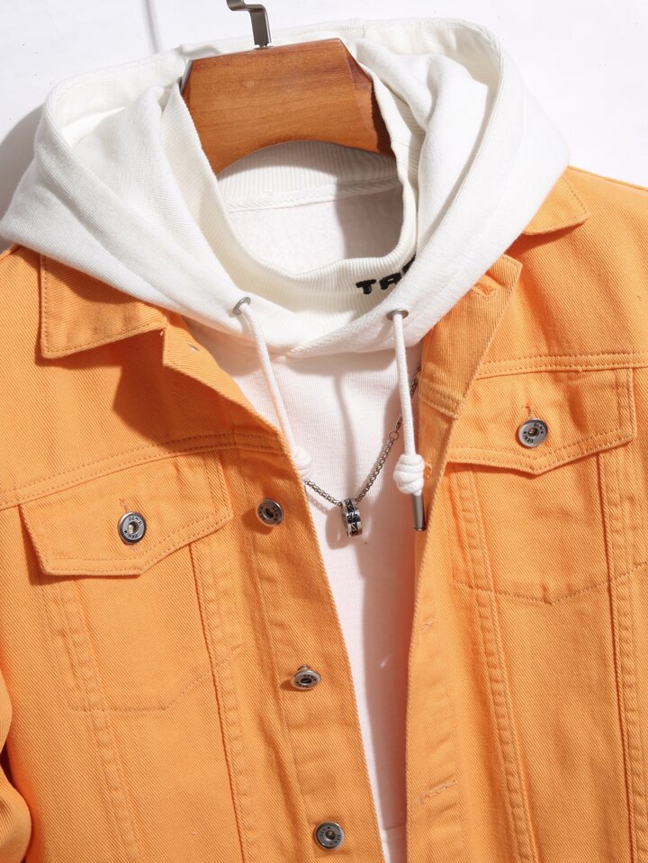 uomo Giacca in denim tasca con patta senza felpa con cappuccio