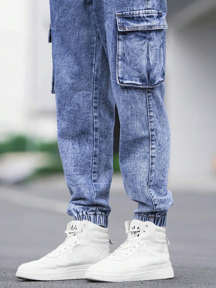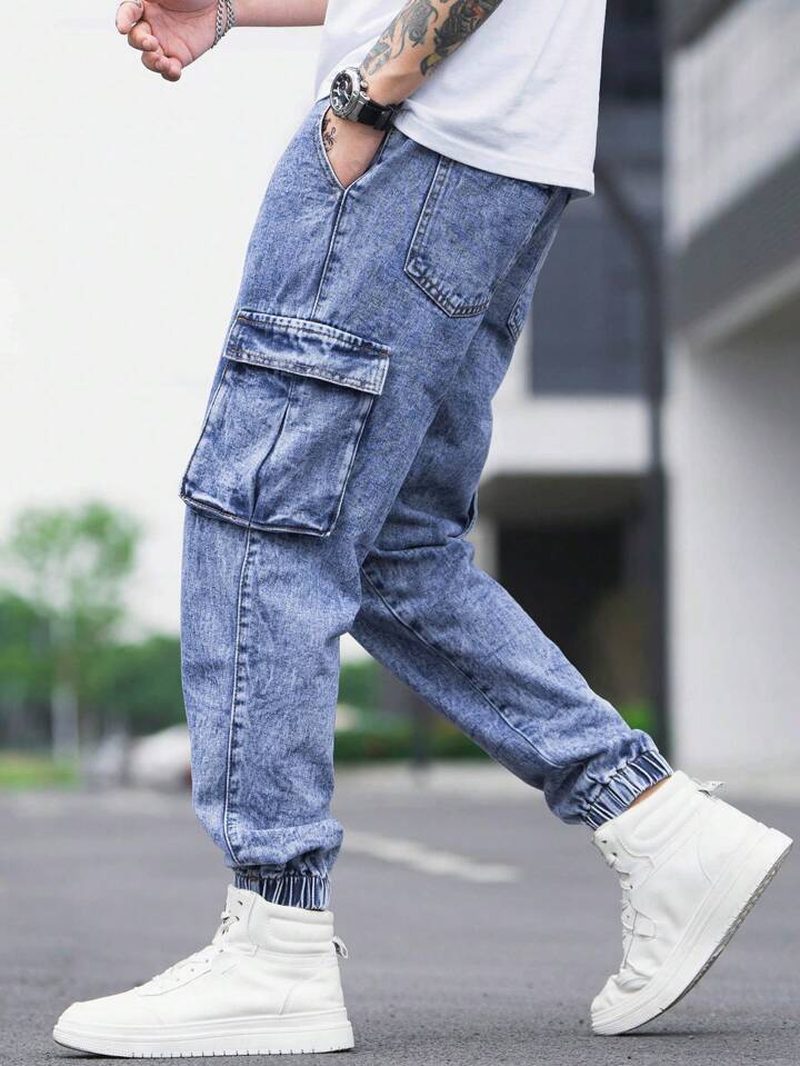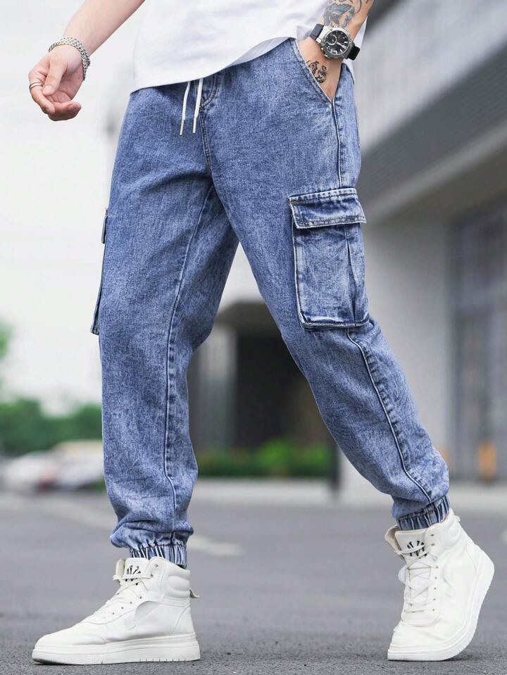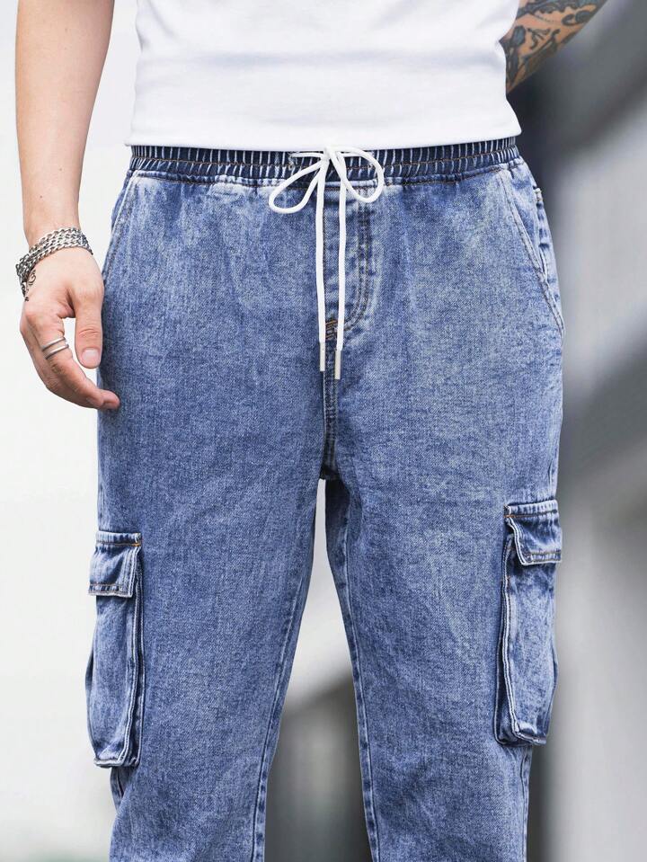 Uomo Jeans cargo cotone tasca con patta con coulisse a vita