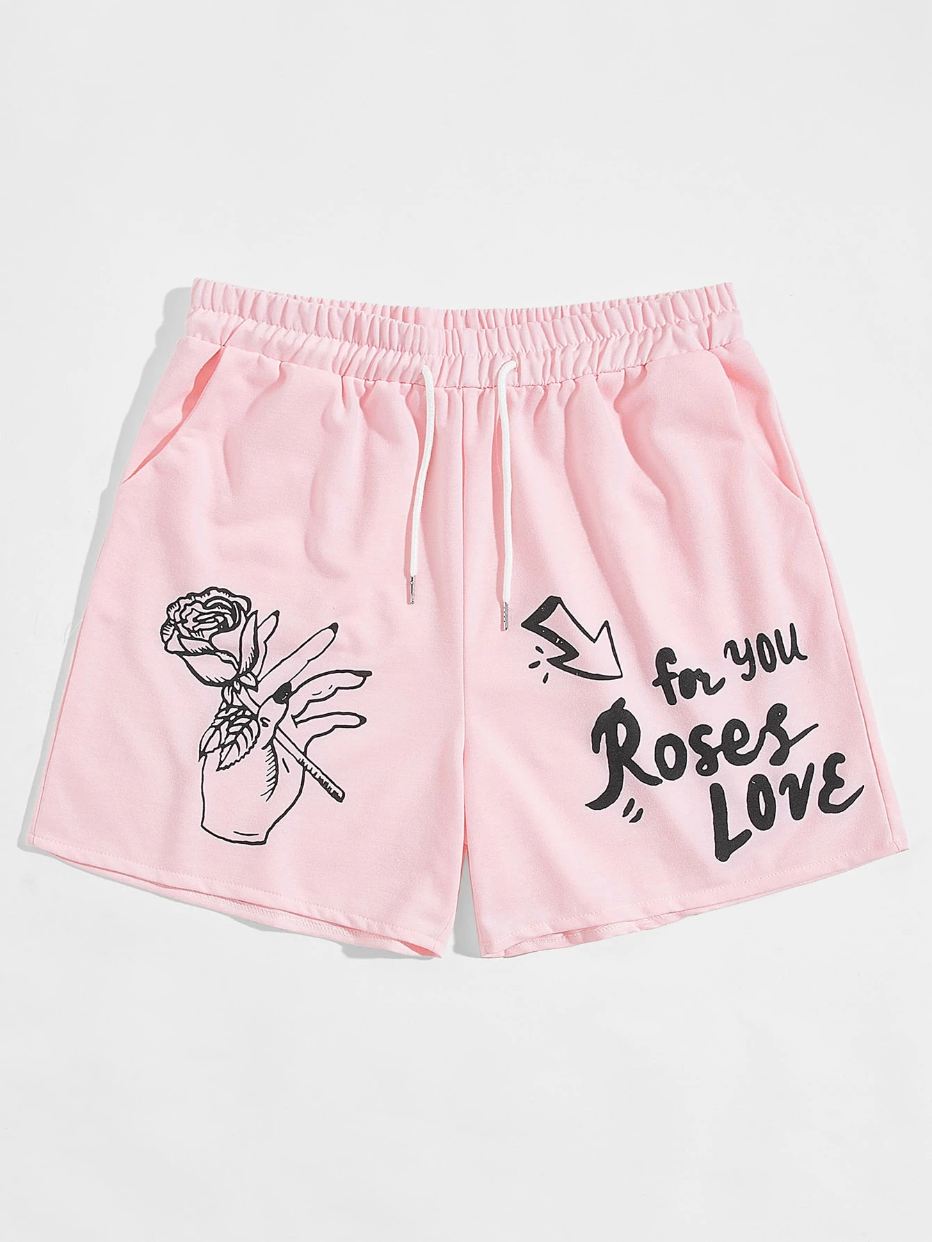 Shorts con coulisse e lettera & floreale 5'' per ragazzi