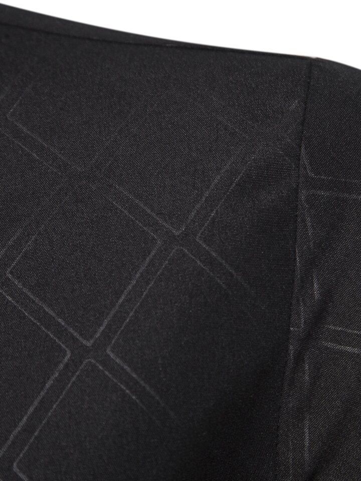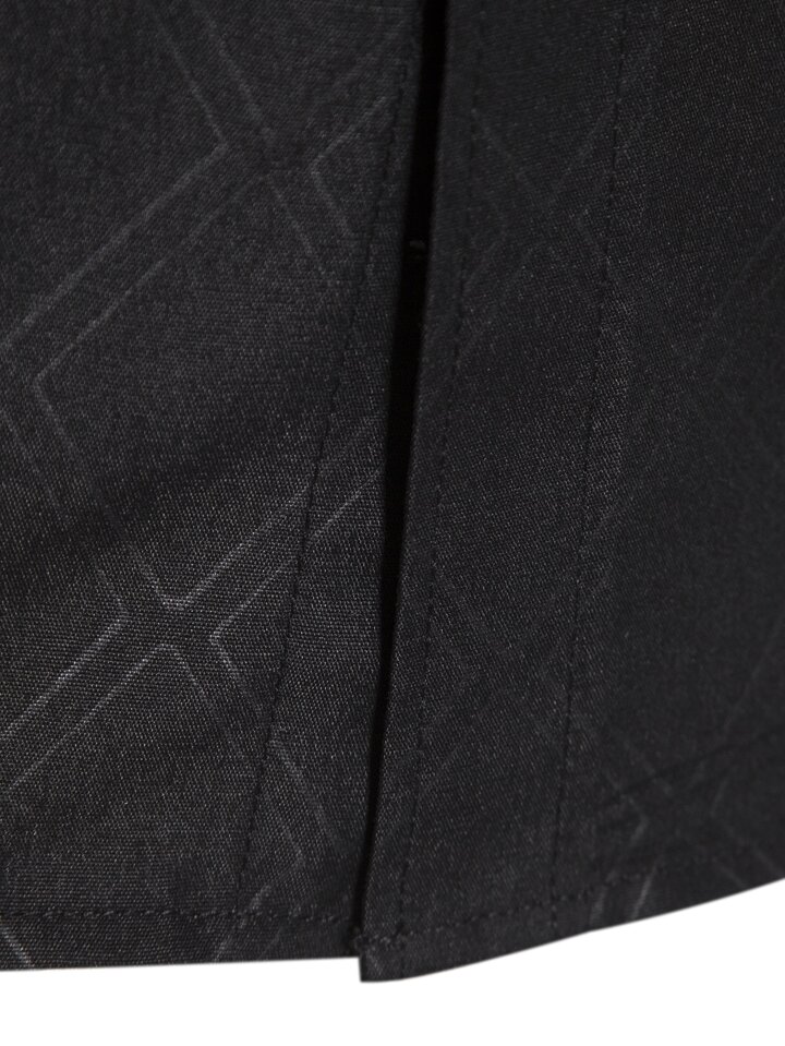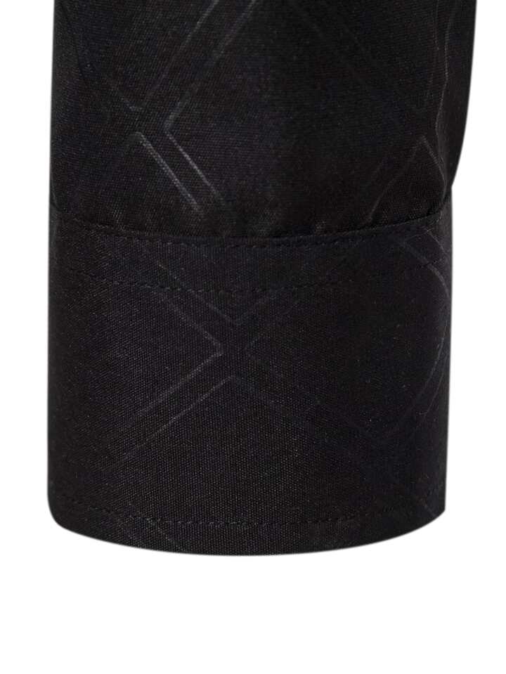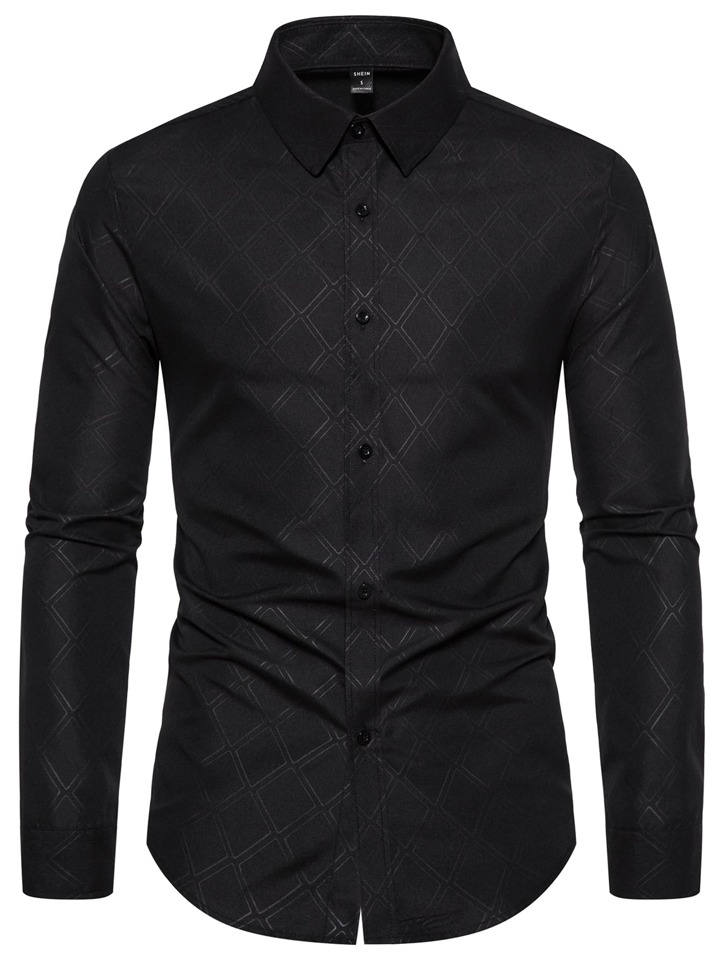 Camicia casual da uomo a maniche lunghe con colletto, con stampa geometrica, adatta per lavoro e affari, in tessuto nero strutturato, autunnale