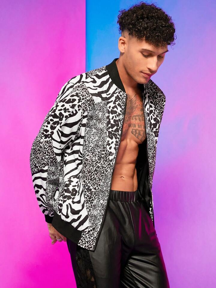 Giubbotto Bomber Da Uomo Con Stampa A Righe Leopardate E Zebrate Dalla Vestibilità Ampia