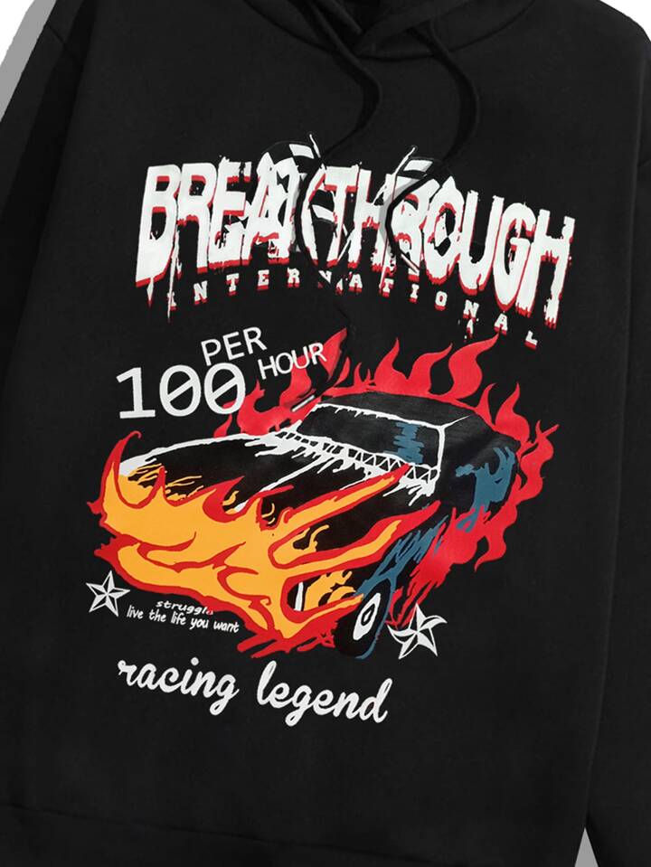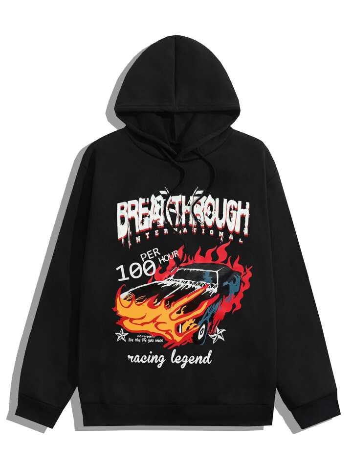 ragazzi Felpa con cappuccio lettere con grafica auto con coulisse