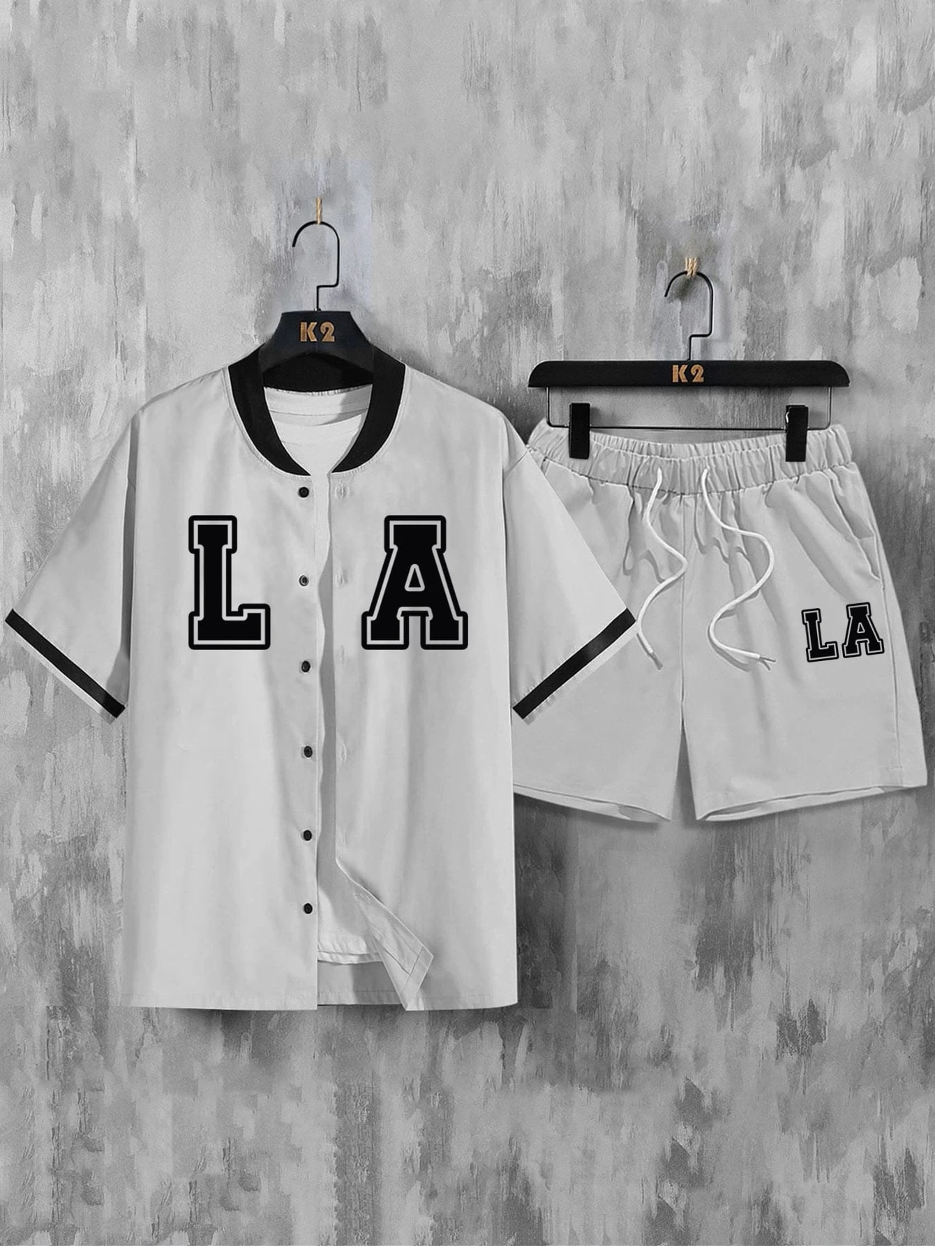 Uomo Maglietta Con Collo Stile Baseball E Grafica A Lettere & Pantaloncini Con Coulisse In Vita Senza Maglietta