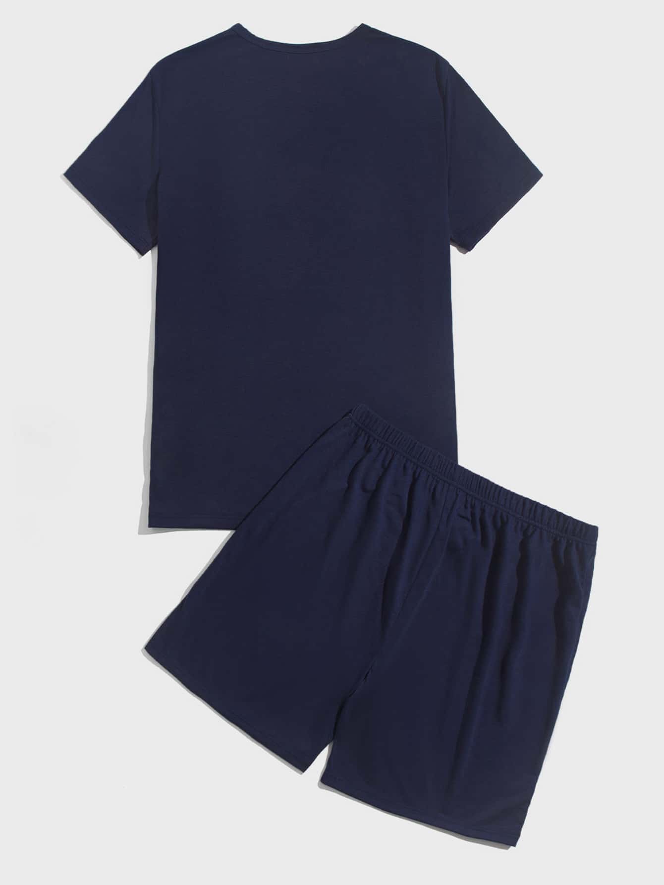 Uomo Set pigiama con grafica lettera color block