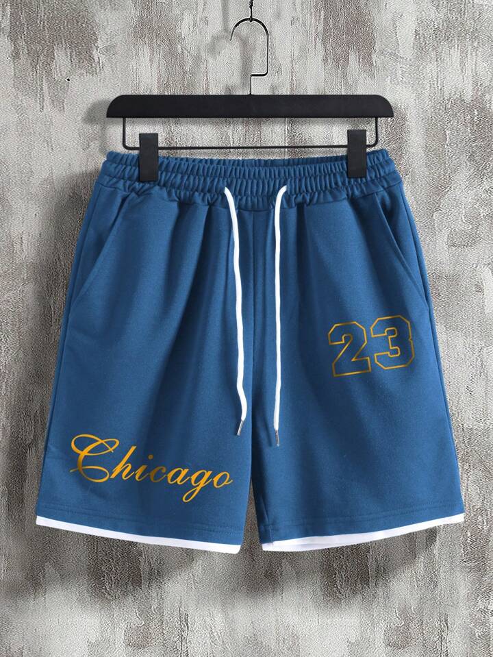 Uomo Shorts con grafica lettera bordo a contrasto con coulisse a vita