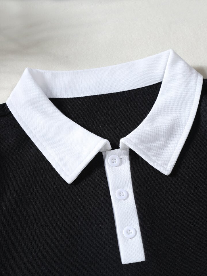 Maglia Polo Oversize Da Uomo Con Grafica Letteraria E Colletto A Contrasto