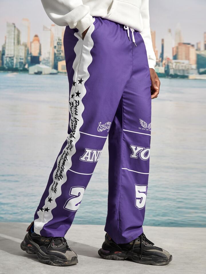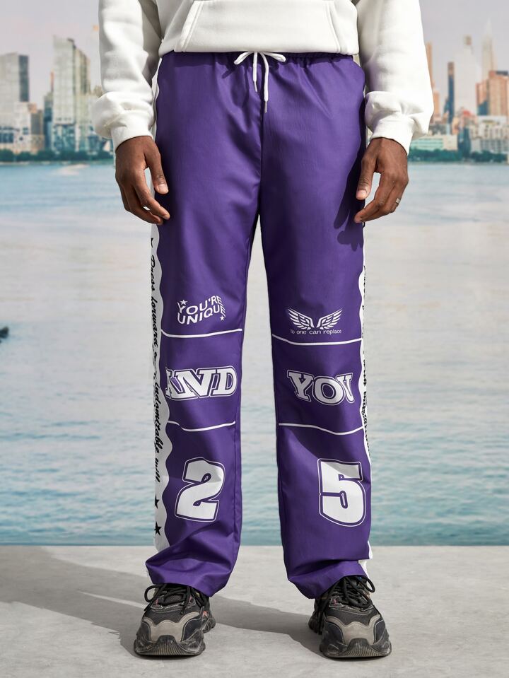 Ragazzi Pantaloni con grafica lettera cucitura laterale con coulisse a vita