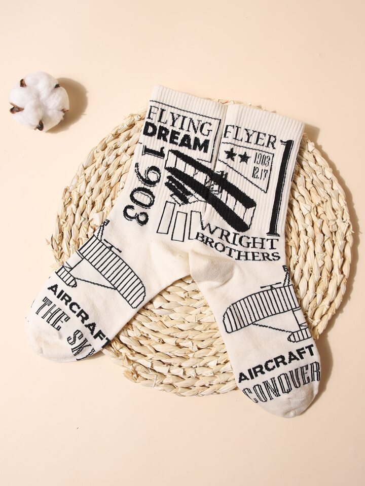 Calze girocollo da uomo con grafica a lettere, autunnali