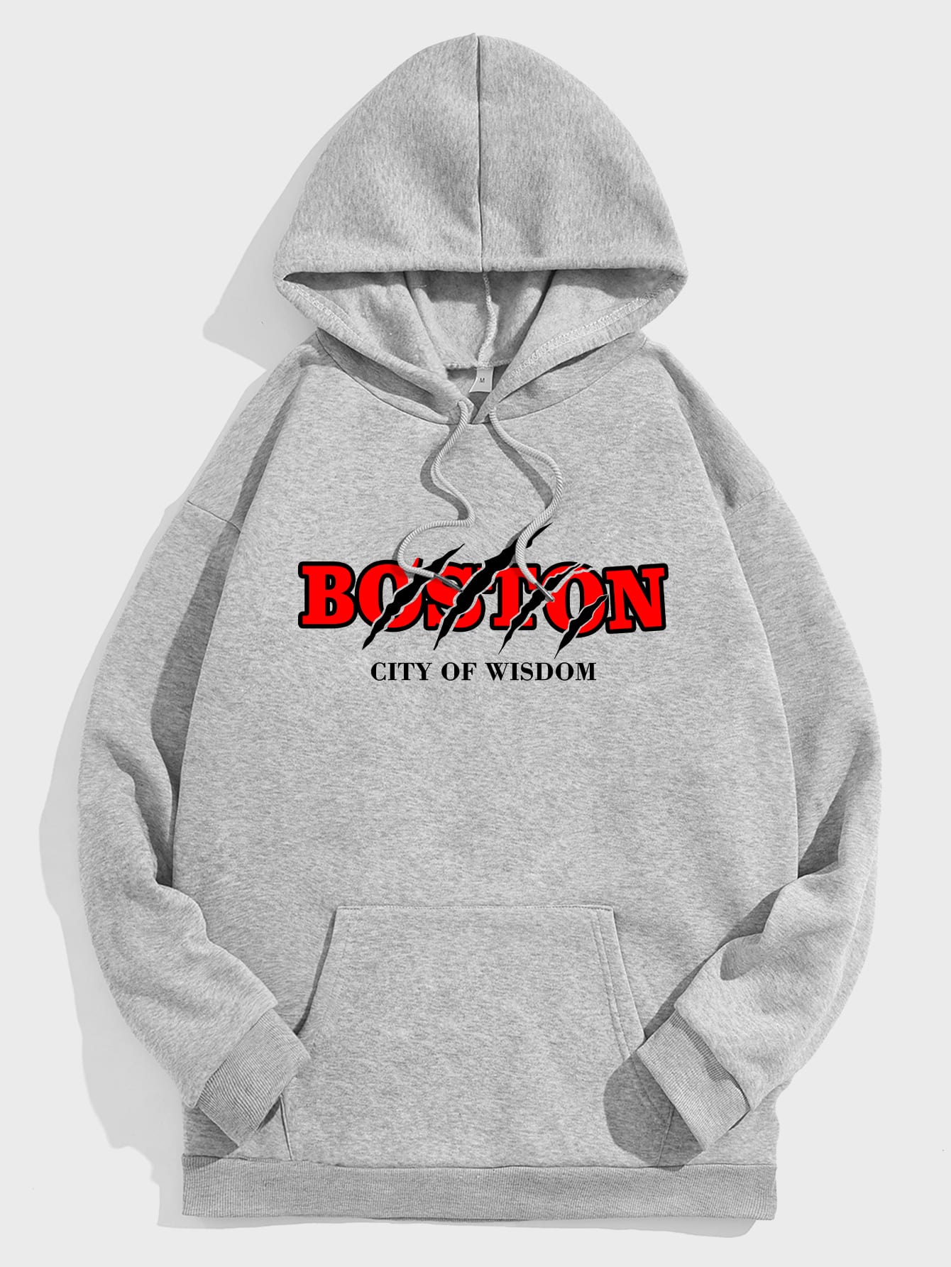 Ragazzi Felpa con cappuccio con grafica lettera con coulisse foderato termico