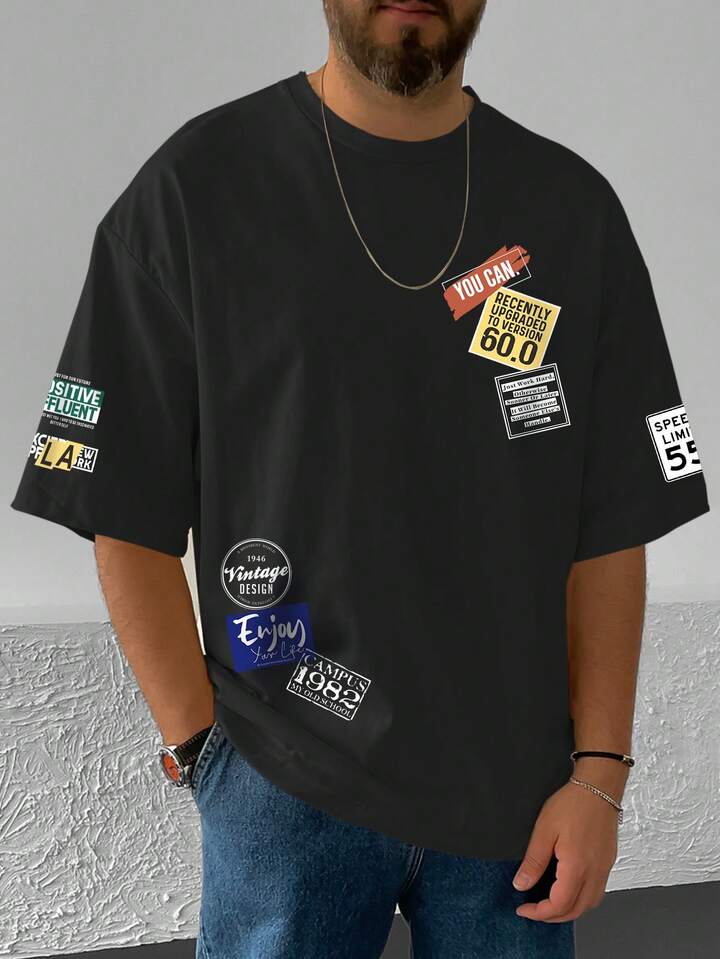 Uomo Maglietta con spalla cadenti con grafica lettera