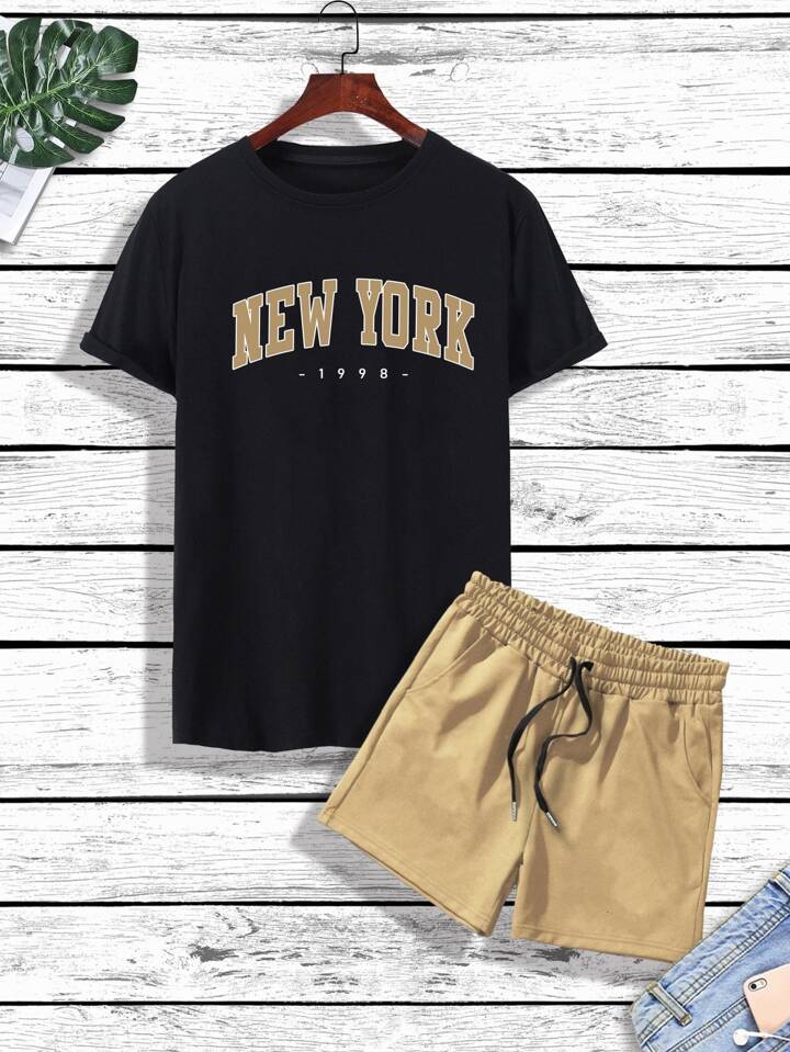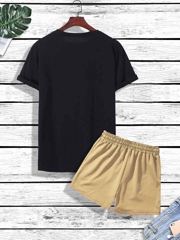 Uomo con grafica lettera Maglietta & con coulisse a vita Shorts