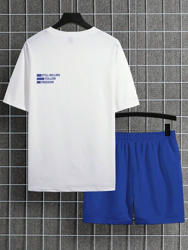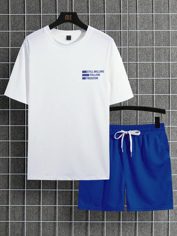 Uomo Maglietta con grafica lettera & Shorts con coulisse a vita