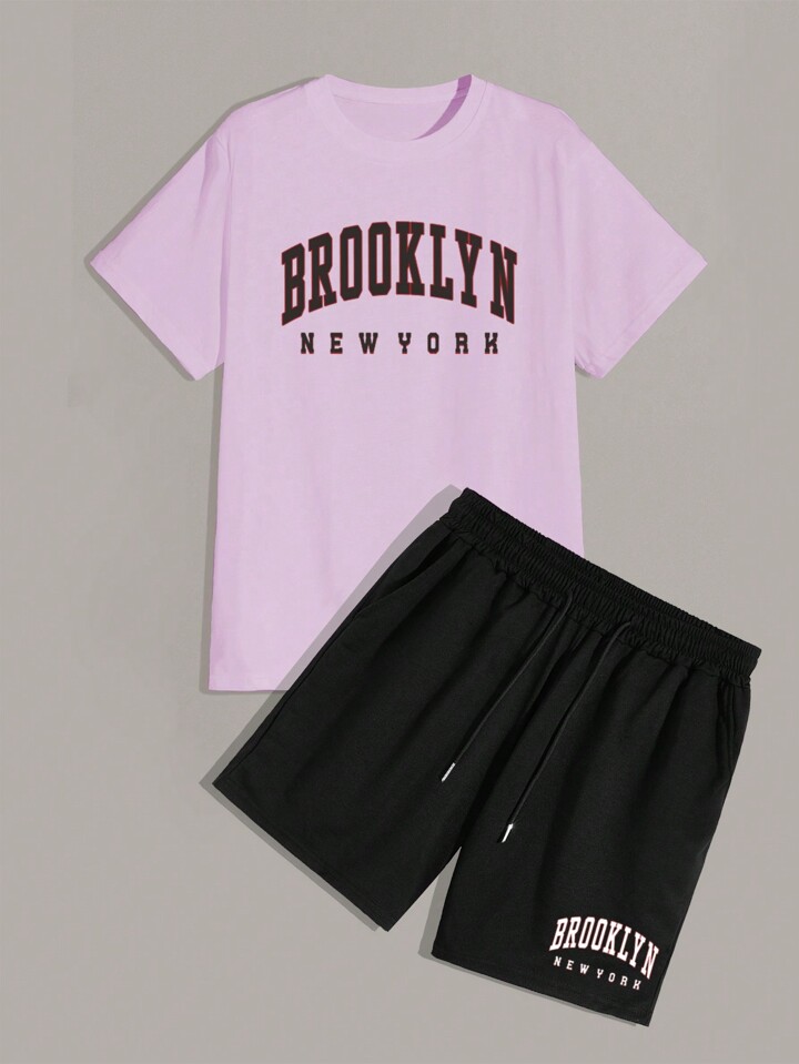 Uomo con grafica lettera Maglietta & con coulisse a vita Shorts