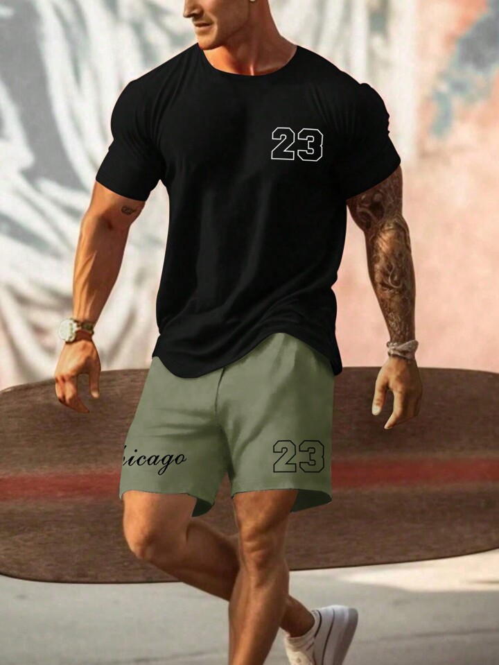 Uomo con grafica lettera Maglietta & con coulisse a vita Shorts