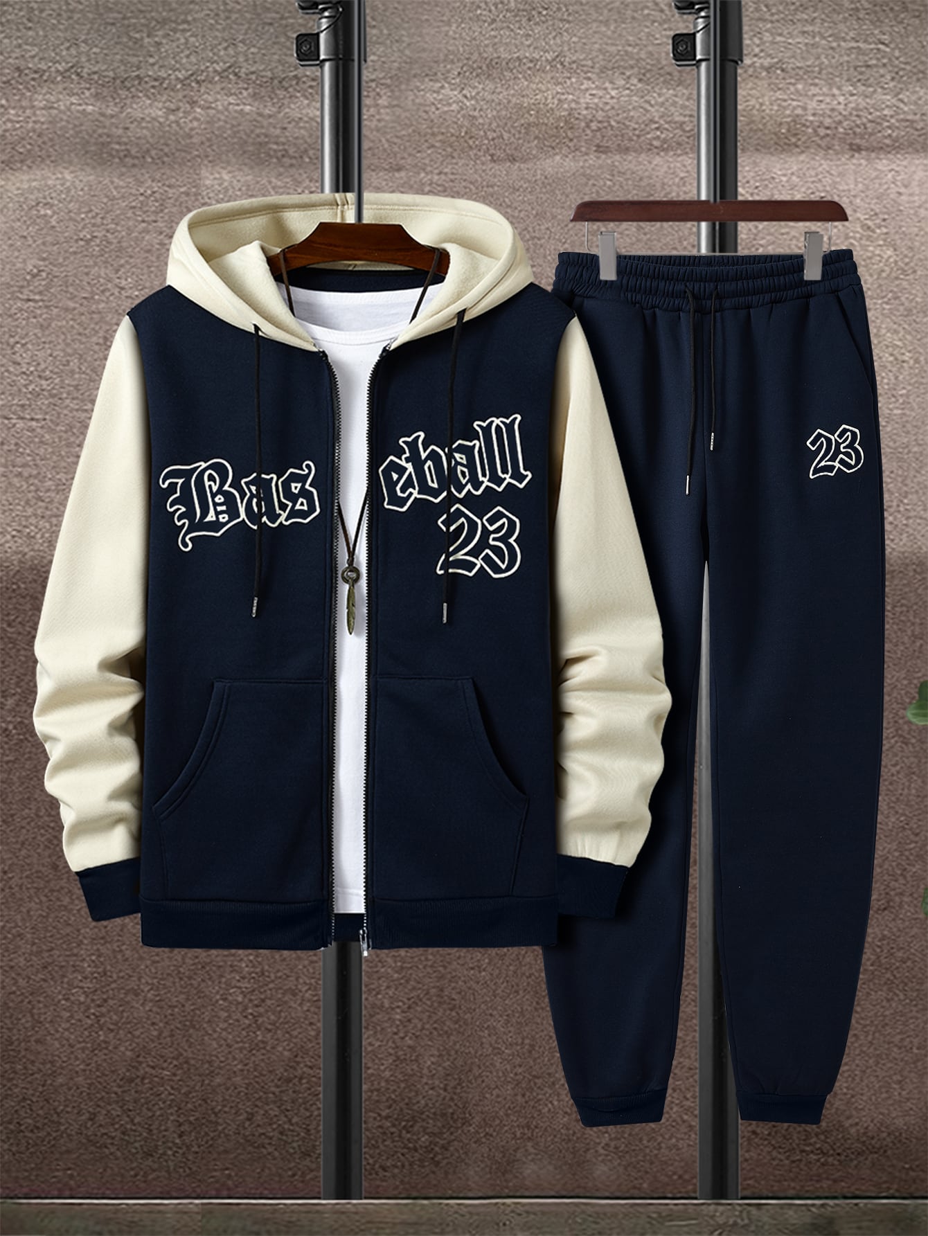 Uomo Pantaloni sportivi e Felpa con cappuccio con grafica lettera bicolore con coulisse senza maglietta