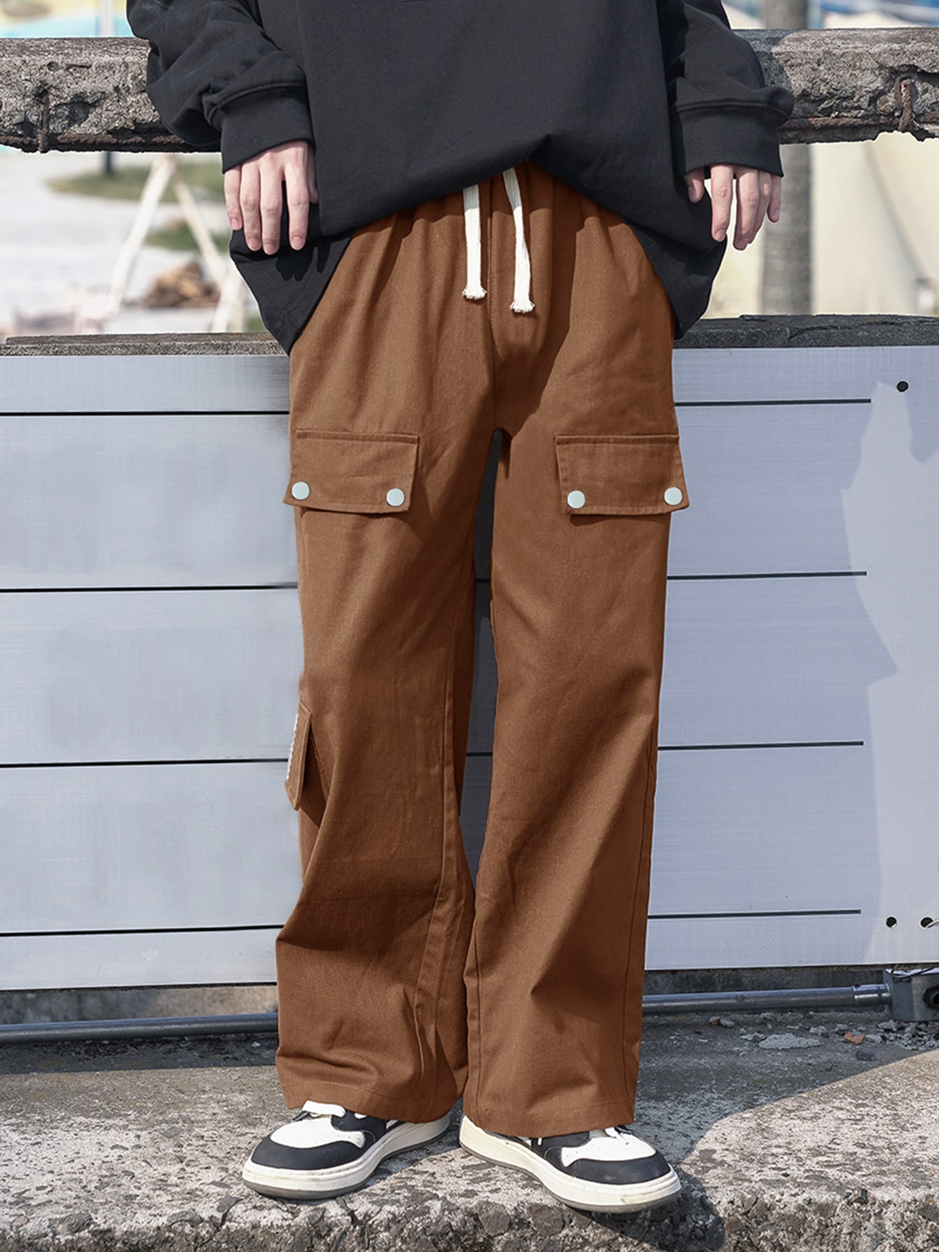 Ragazzi Pantaloni con toppa lettera con coulisse tasca con patta