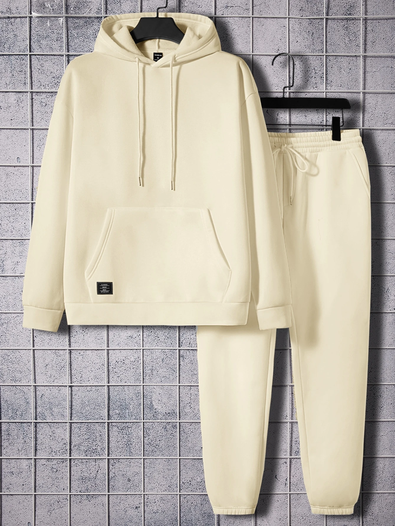 uomo Pantaloni sportivi e Felpa con cappuccio con toppa lettera con tasca a marsupio con coulisse