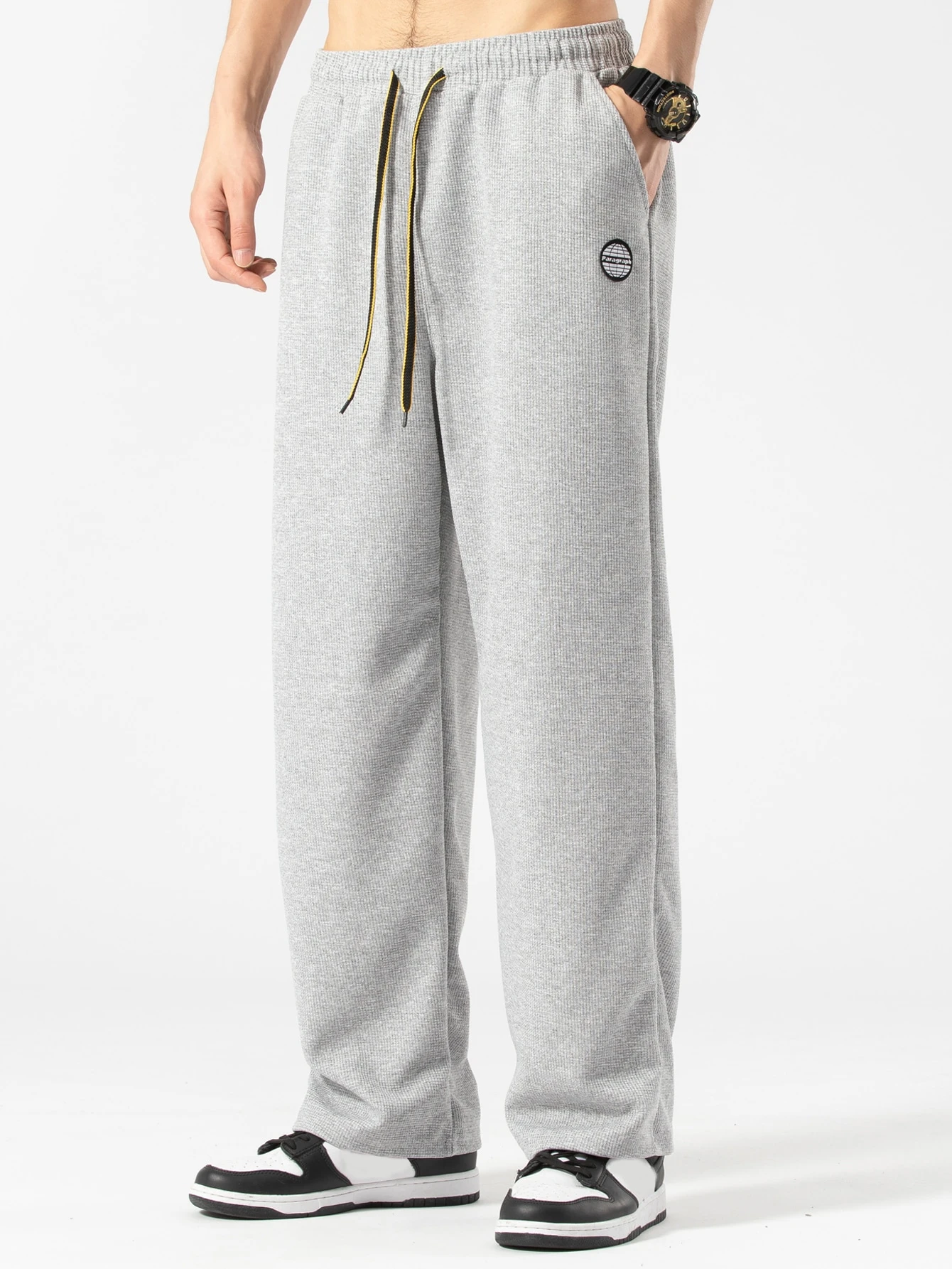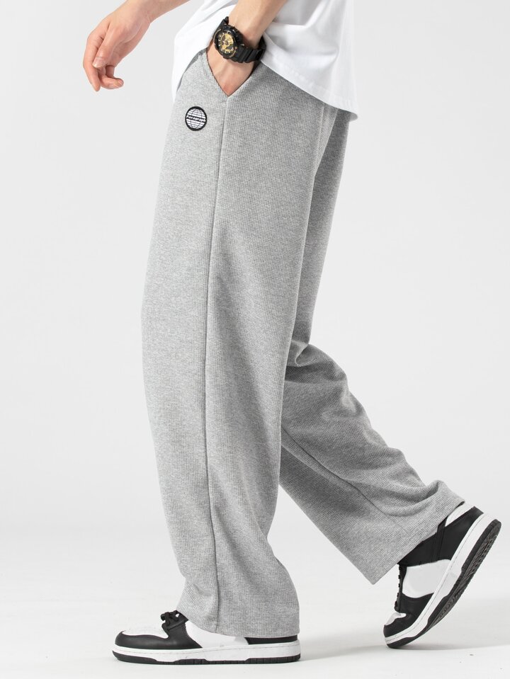 Pantaloni Da Uomo A Maglia Lavorati A Maglia Waffle A Vestibilità Ampia Con Toppa Con Lettere E Tasche Oblique