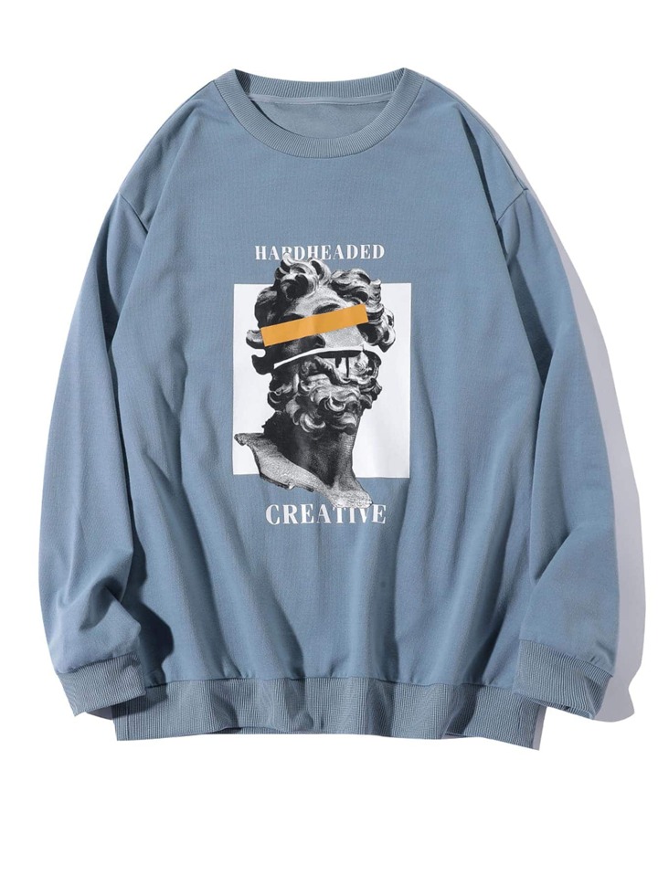 Felpa casual da uomo in grafica floreale e lettere