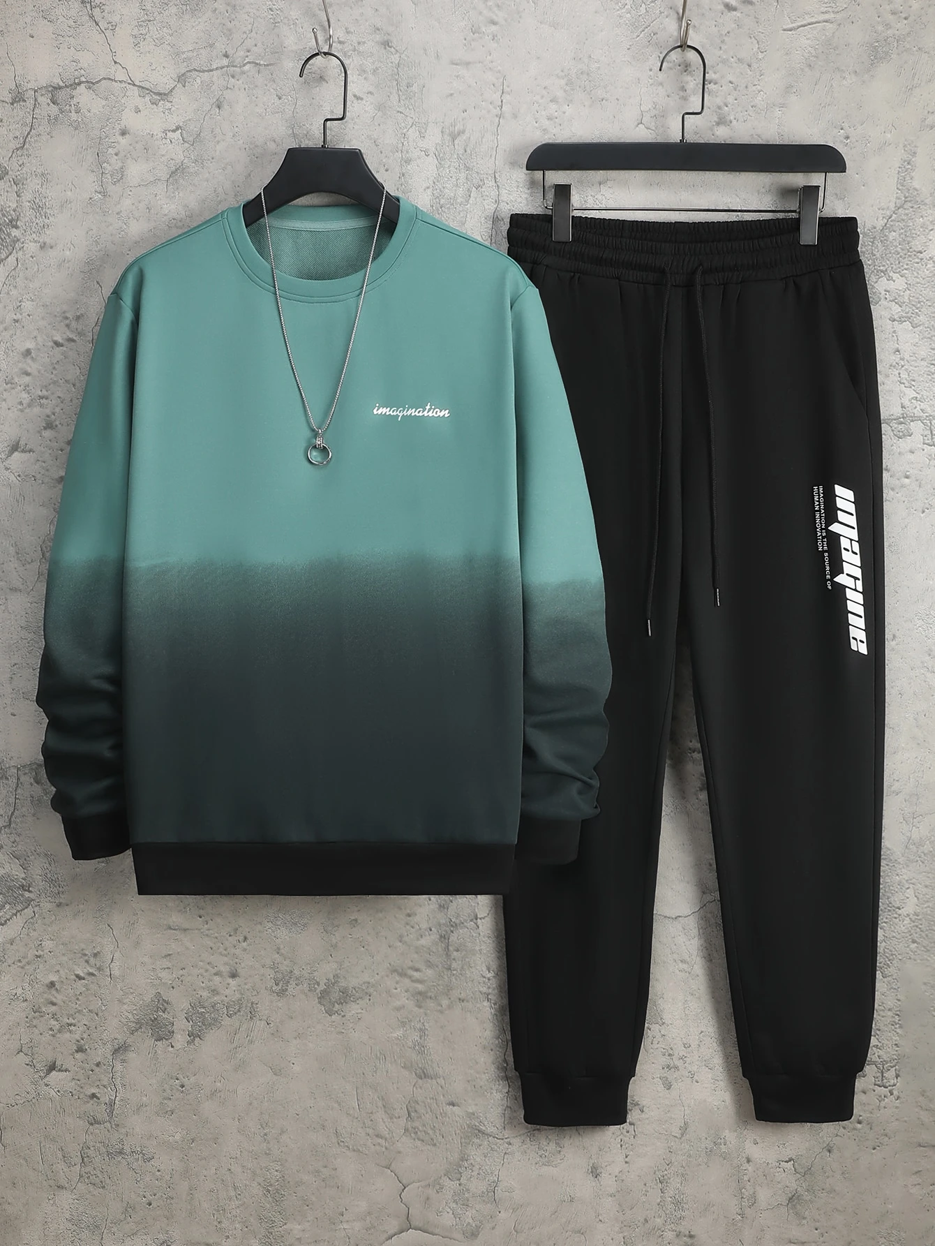 uomo Pullover sfumato con grafica lettera & Pantaloni sportivi con coulisse senza collana