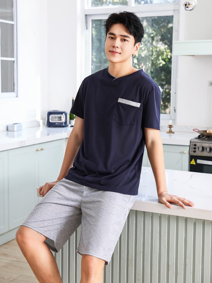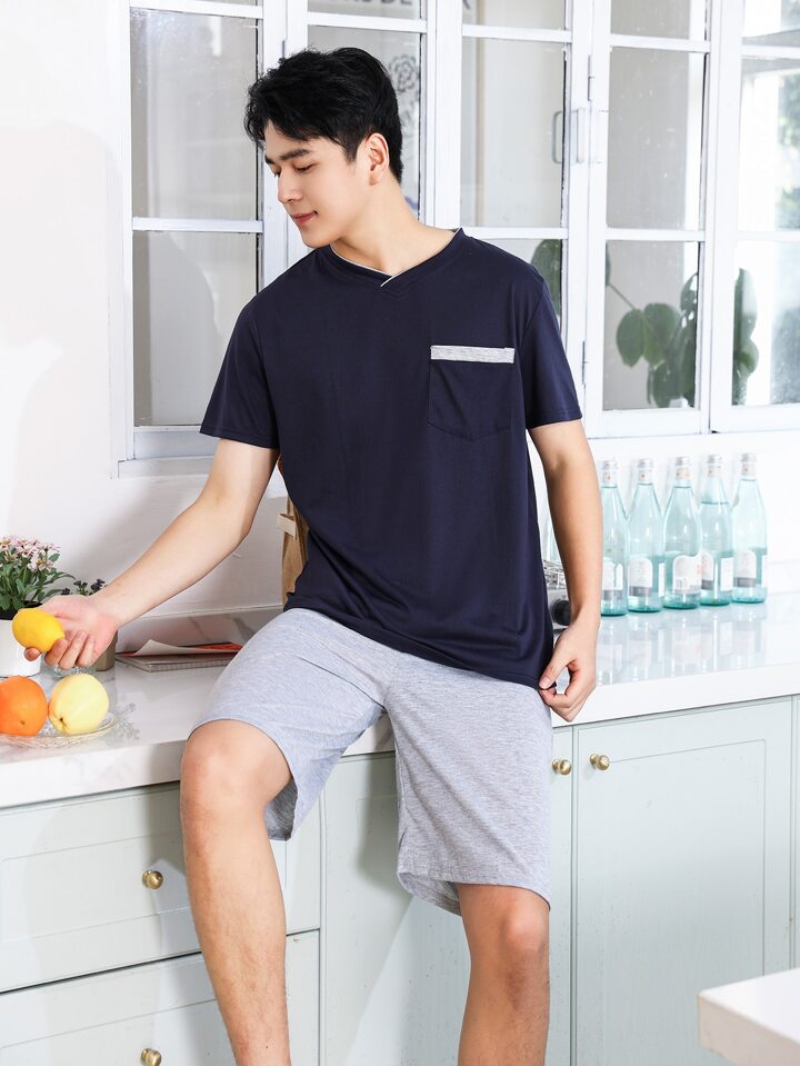 Uomo Set pigiama tasca singola davanti