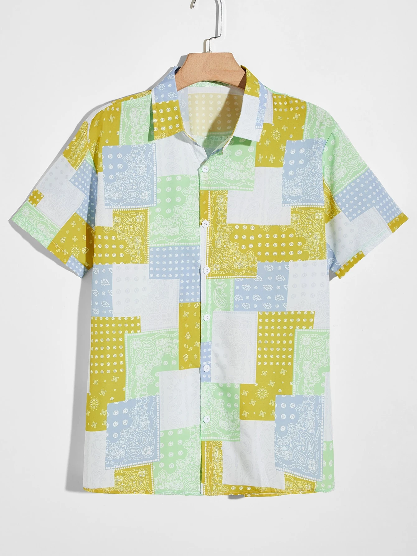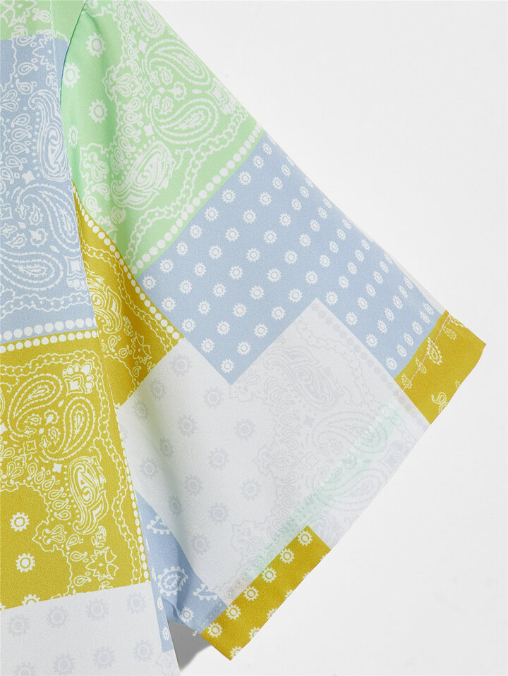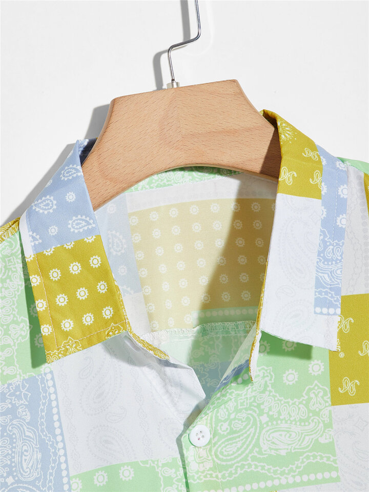 Camicia con stampa paisley color block con bottone frontale da ragazzi