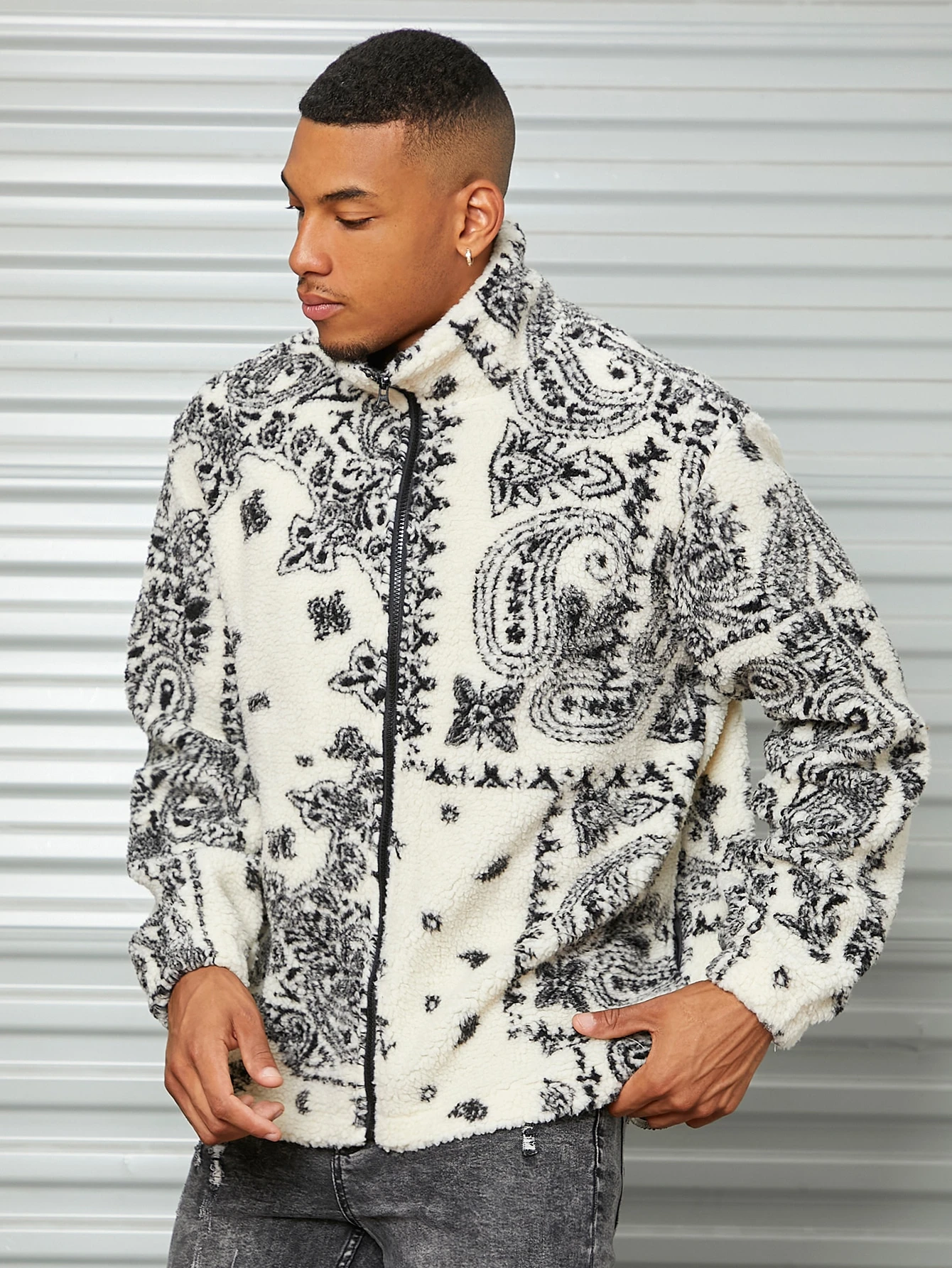 Giacca teddy con motivo paisley e fazzoletto con zip