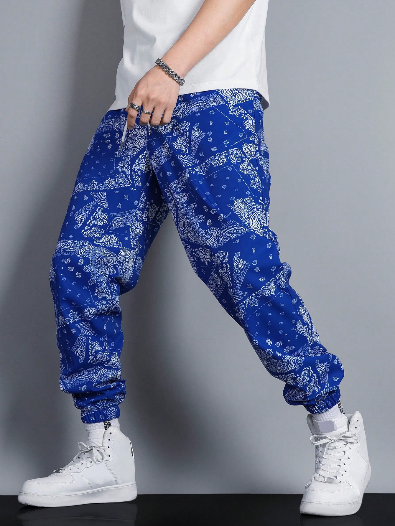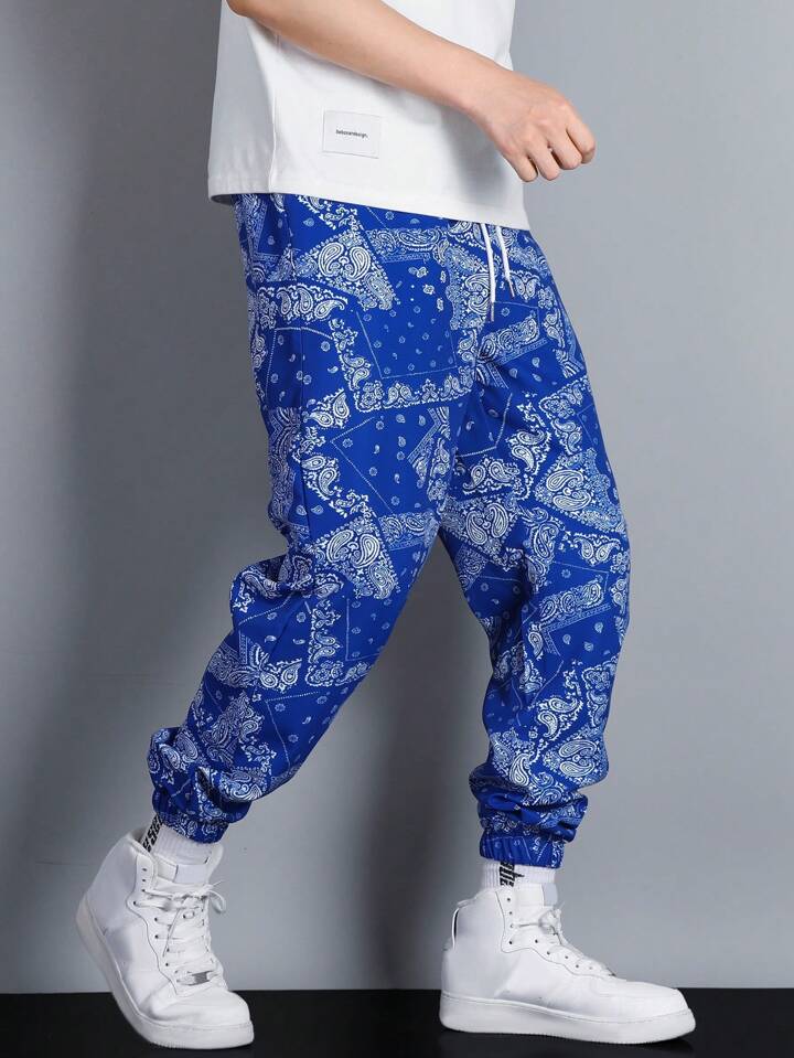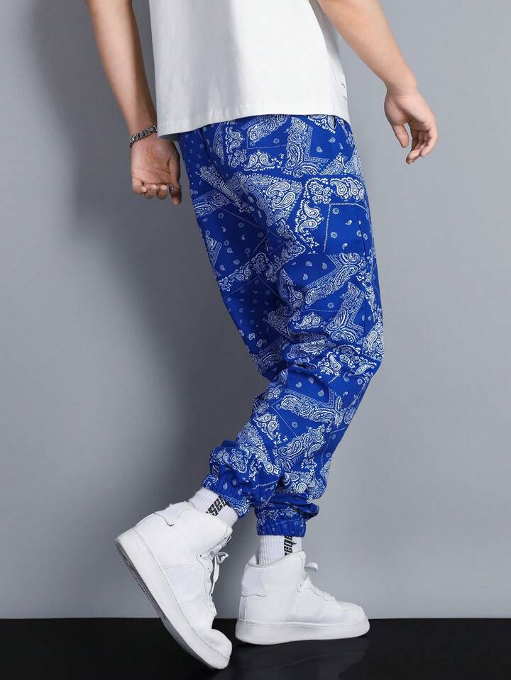 Uomo Pantaloni con stampa sciarpe paisley con coulisse a vita