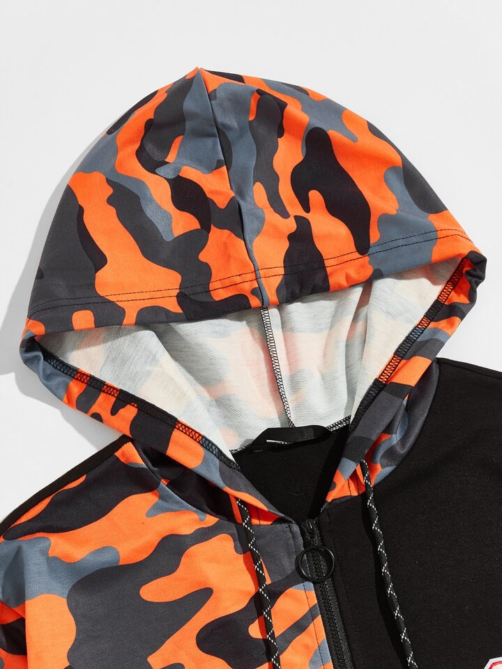 Giacca con cappuccio da uomo mimetica e dettaglio rattoppato