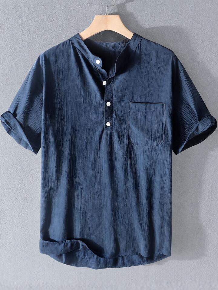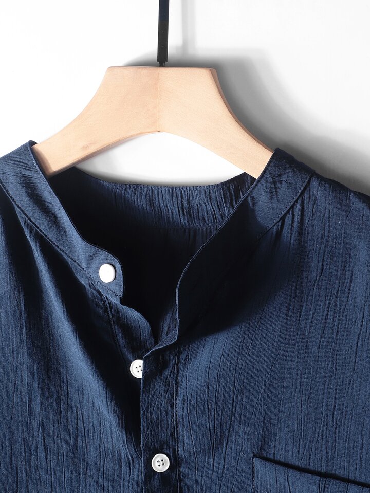 uomo Camicia con toppa tasca con mezzo bottone monocolore