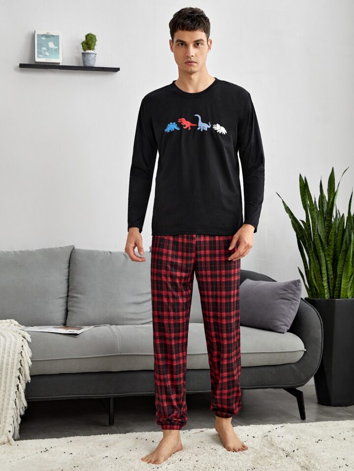 Pantaloni pigiama da uomo con vita regolabile a quadri, autunnali