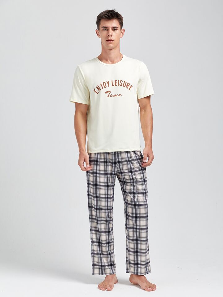 Uomo Pantaloni da notte con stampa quadri con coulisse a vita