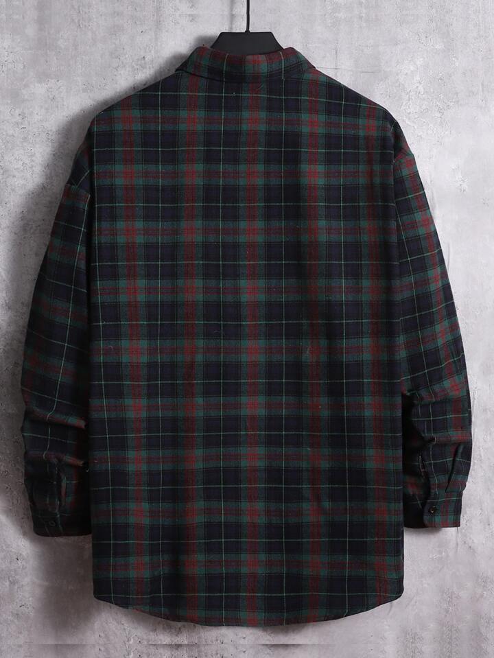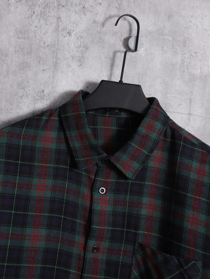 Uomo Camicia cotone con stampa quadri con tasca a toppa