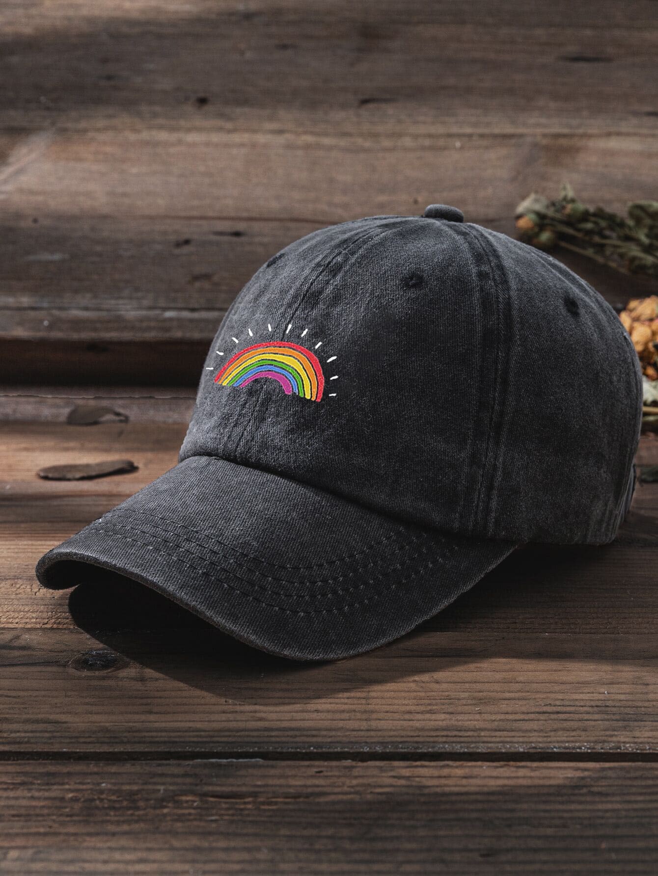 1 pezzo Cappellino da baseball stile Y2K unisex con stampa arcobaleno lavato, berretto lavorato a maglia per esterni, casual e versatile, adatto per l uso quotidiano in inverno