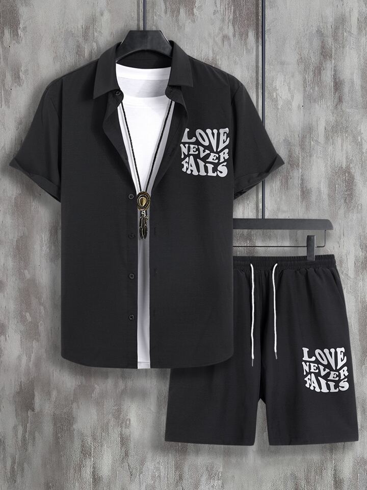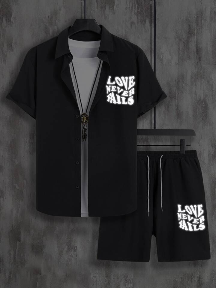 Uomo catarifrangente con grafica lettera Camicia & Shorts senza maglietta