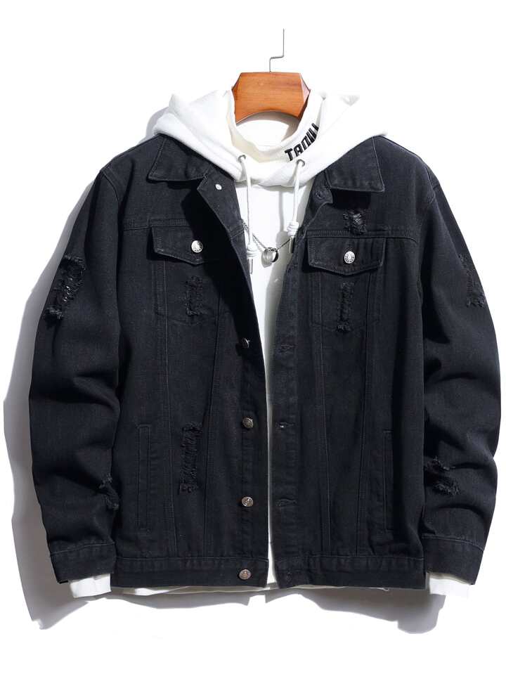 ragazzi Giacca in denim con strappati senza felpa con cappuccio