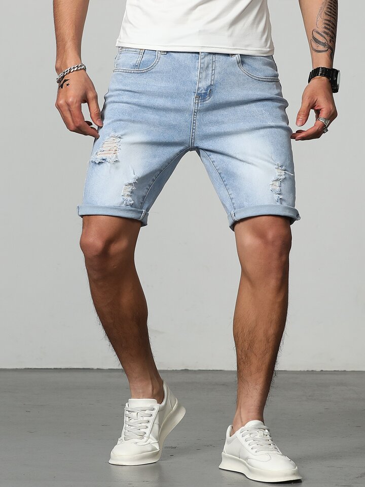 Uomo Shorts in denim bermuda cotone con strappati sfrangiato lavaggio con candeggina